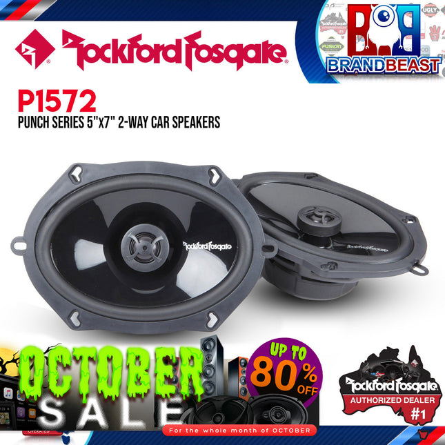 Rockford Fosgate Punch 5"x7" 2-Way Full Range Speaker: Fanatics That Need a Great Sounding Speaker to Replace Factory Installed Garbage Will Certainly Benefit from This Punch Series Full-Range Speaker The P1572 is a 5”x7” 2-way full-range speaker rated at 60 watts RMS designed for fanatics needing a quality factory replacement. Includes two speakers with adapter plates, integrated high-pass crossovers and mounting hardware. Fanatics that need a great sounding speaker to replace factory installed garbage will certainly benefit from this Punch series full-range speaker. The P1572 offers a Flex Fit™ basket to ensure compatibility with odd shaped factory speaker locations and an ICC (Integrated Concealed Crossover), eliminating the need to mount any black boxes. Rockford Fosgate P1572 Features: FlexFit basket design OEM adapter plate included PEI dome tweeter Butyl midrange rubber surround Injection molded mineral filled polypropylene cone Rockford Fosgate P1572 Specifications: Speaker Type 2-Way Coax Nominal Impedance (Ohms) 4-Ohm CEA-2031 Compliant Midrange Size (Nominal Diameter) 5"x7" Midrange Mounting Depth 2.20" (56mm) Mounting Hardware Yes, Includes 6"x8" adapter plate Power Handling (RMS) 60 Watts RMS, 120 Watts Max Frequency Response (Hz) 75Hz - 22kHz Mounting Hardware Yes, Includes 6"x8" adapter plate Power Handling (RMS) 60 Watts RMS, 120 Watts Max Crossover n/a - tweeter has built-in crossover Sensitivity (dB @ 1W/1M) 89dB Grille/Trim Ring Included No Shipping Weight 5.6 lbs. (2.54 Kg.) Legendary Products & Support From Authorized Dealers When you choose Rockford Fosgate, you're choosing quality and performance. But just as important as what you buy is where you buy it from. Here's why purchasing from an authorized dealer is always the right choice: ▸ Expert Knowledge & Training Only authorized Rockford Fosgate dealers are factory-trained to sell and install our products. They have the expertise to ensure your purchase is set up correctly and meets your expectations. ▸ Authorized Warranty Protection: We offer one of the best warranties in the industry, but only purchases made through authorized dealers are covered. Don't be misled by unauthorized sellers who can't provide genuine warranty support. ▸ Reliable Customer Support: If you ever run into an issue, you're backed by Rockford Fosgate's official manufacturer's warranty. No need to deal with overseas returns—our local team takes care of everything quickly and efficiently. ▸ Protect Your Investment: Buying from an authorized dealer ensures you're getting genuine products, full warranty coverage, and expert support. Ask yourself—is saving a few dollars worth losing all that? Choose wisely. Buy from an authorized Rockford Fosgate dealer today!