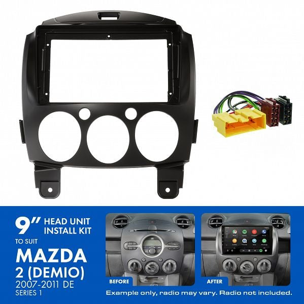 The Aerpro AKMZ19 9" Installation Kit comes with all of the components required to install a 9" trapezoid-shaped radio into your Mazda 2 2007-2011 (DE) Series 1 vehicles. The head unit ISO harness is not included in the kit. Recommended to be installed with an Aerpro APP8 Head Unit Secondary ISO Harness (Sold Separately).