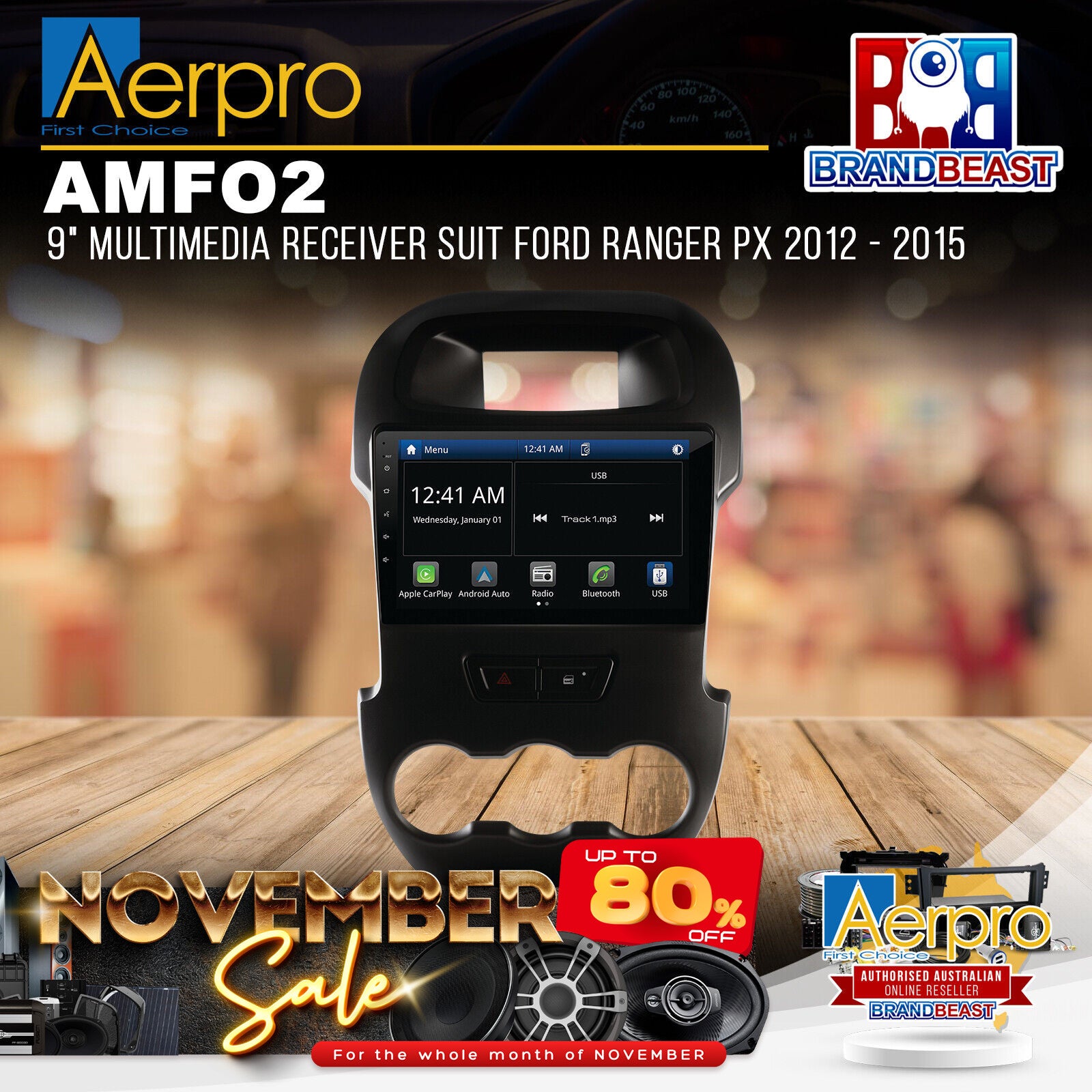 9" Multimedia Receiver Suit Ford Ranger PX (2012-2015)The Aerpro AMFO2 9" Multimedia Receiver with Wireless Apple CarPlay and Android Auto suits Ford Ranger PX (2012-2015) vehicles. Featuring a large 9" capacitive touchscreen display, this Multimedia Receiver has Apple CarPlay and Android Auto which can be used wireless or wired, built-in Bluetooth for hands-free phone calls & wireless audio streaming, rear USB input as well as an AM/FM radio tuner.