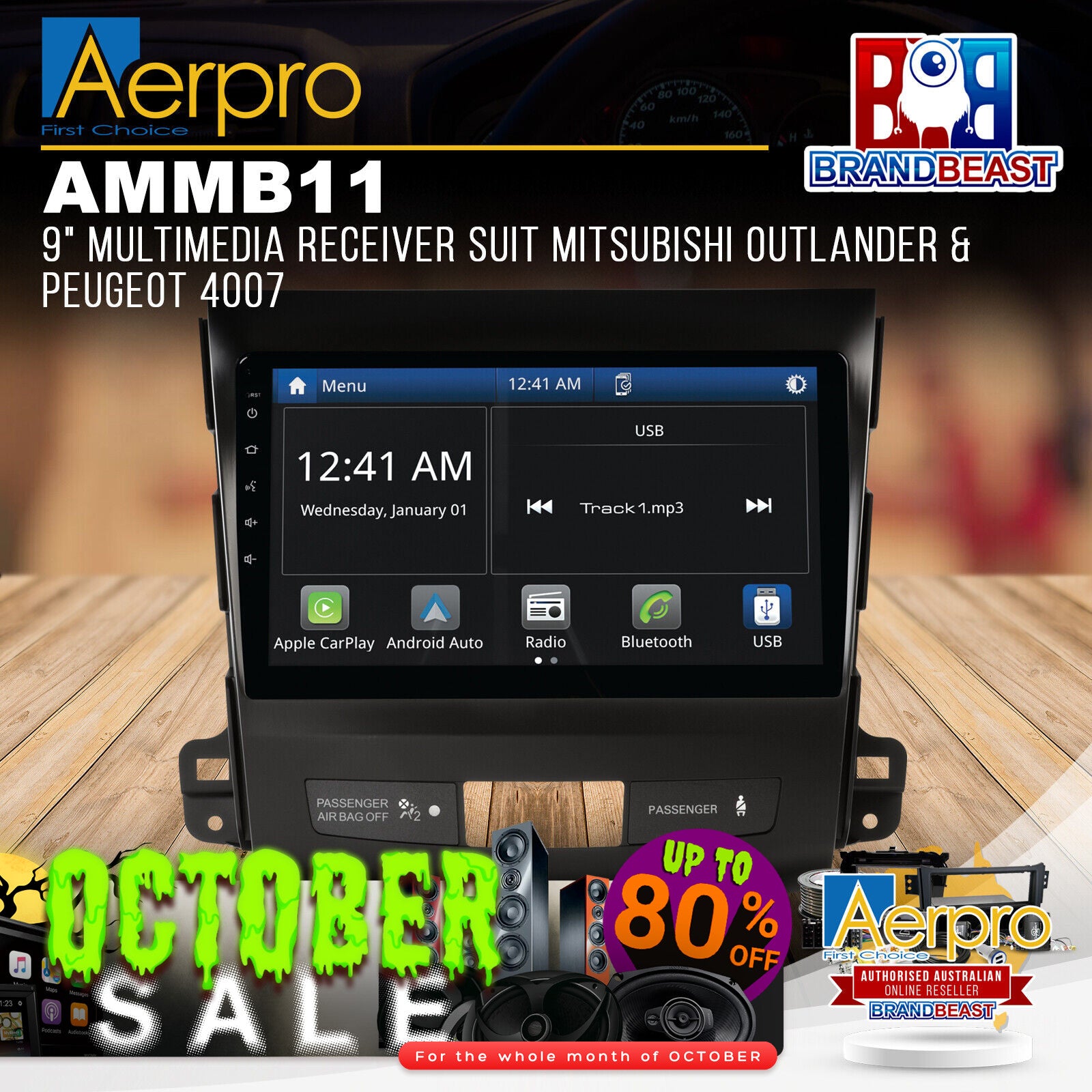 The Aerpro AMMB11 9" Multimedia Receiver with Wireless Apple CarPlay and Android Auto suits Mitsubishi Outlander ZH (2010-2012) and Peugeot 4007 (2010-2012) vehicles. Featuring a large 9" capacitive touchscreen display, this Multimedia Receiver has Apple CarPlay and Android Auto which can be used wireless or wired, built-in Bluetooth for hands-free phone calls & wireless audio streaming, rear USB input as well as an AM/FM radio tuner.