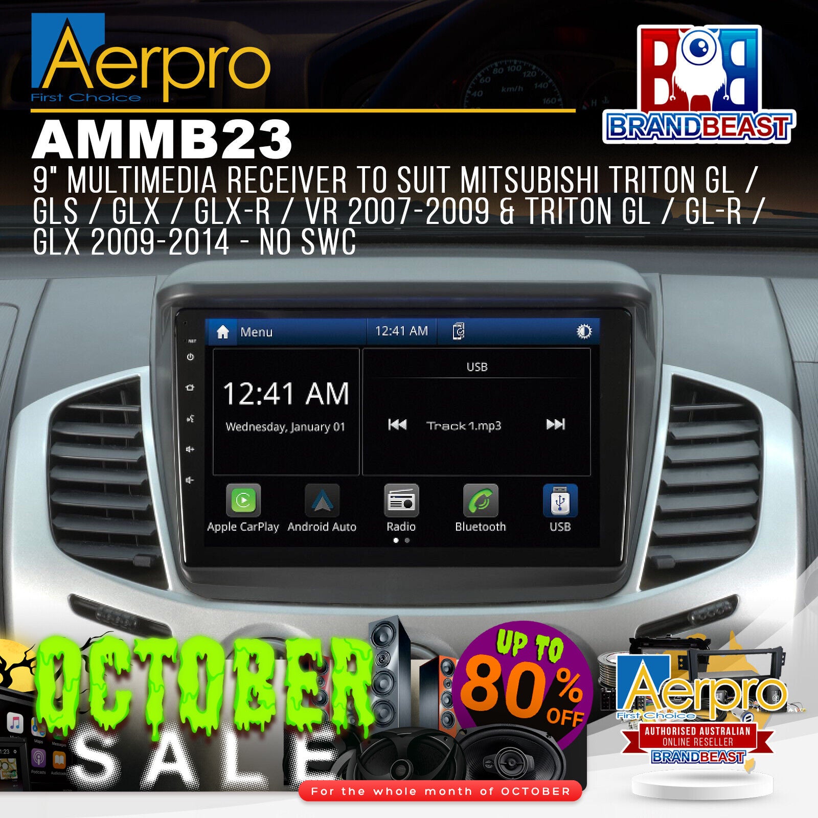 The Aerpro AMMB23 9" Multimedia Receiver with Wireless Apple CarPlay and Android Auto suits Mitsubishi Triton ML GL, GLS, GLX, GLX-R, VR (2007-2009) and Triton MN GL, GL-R, GLX (2009-2014) vehicles without steering wheel controls. Featuring a large 9" capacitive touchscreen display, this Multimedia Receiver has Apple CarPlay and Android Auto which can be used wireless or wired, built-in Bluetooth for hands-free phone calls & wireless audio streaming, rear USB input as well as an AM/FM radio tuner. Sound quality is superb with 40Wx4 max output, 8 band graphic EQ and time alignment capabilities, amplifiers can be added to the system via the 4V/5CH RCA preouts. Supplied as a complete Head Unit Upgrade Kit, the Aerpro AMMB23 includes all the parts required to complete the installation conveniently packaged into one kit.Hema Maps ReadyExperience seamless on-road and off-road navigation through the head unit display by adding the optional Aerpro AMHXD3 On-Road / Off-Road Navigation Module (sold separately).