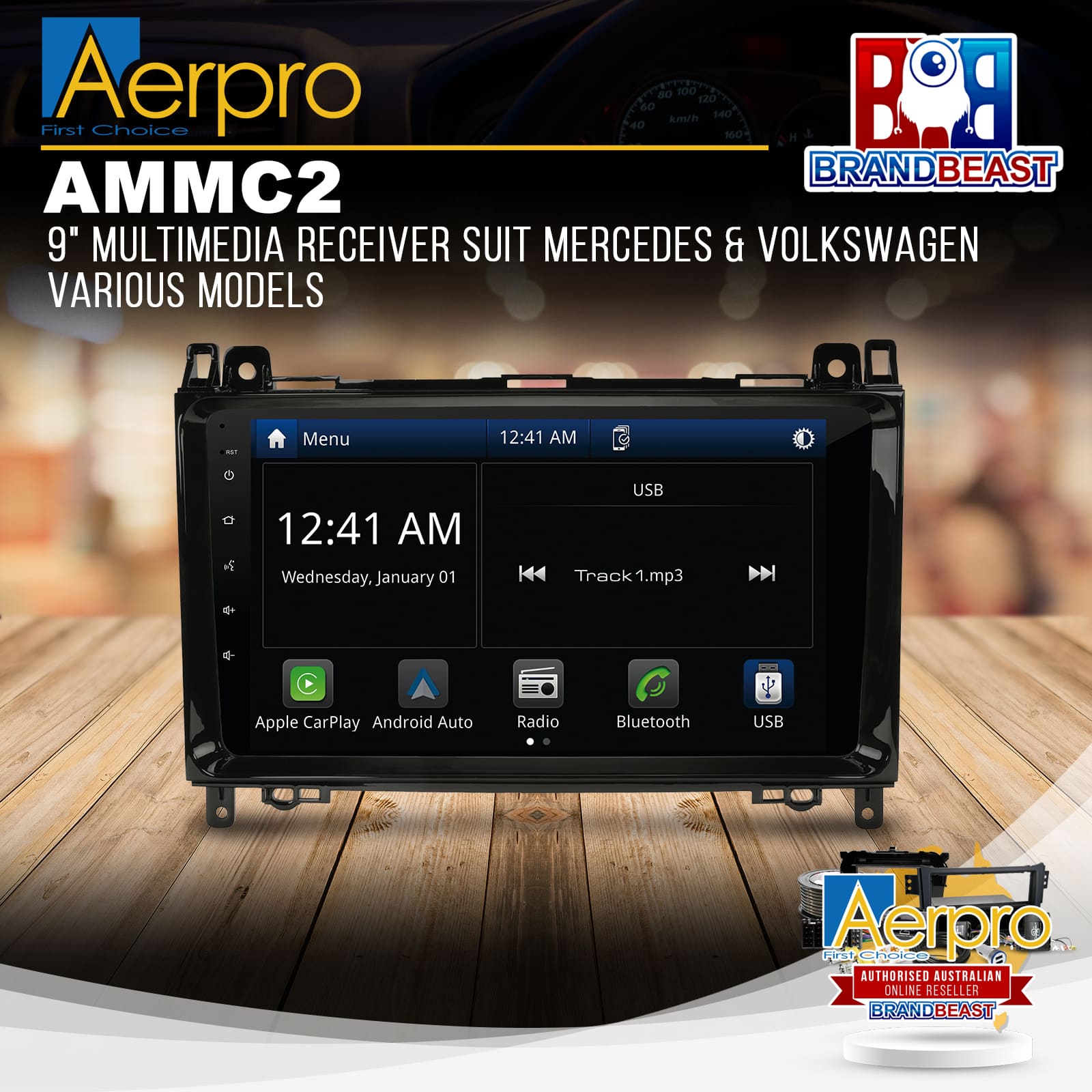 The Aerpro AMMC2 9" Multimedia Receiver with Wireless Apple CarPlay and Android Auto suits Mercedes A-Class W169 (2005-2011)*, B-Class W245 (2005-2011), Sprinter (2007-2018), Viano (2008-2011), Vito W639 (2006-2014) and Volkswagen Crafter (2007-2013) non-amplified vehicles.