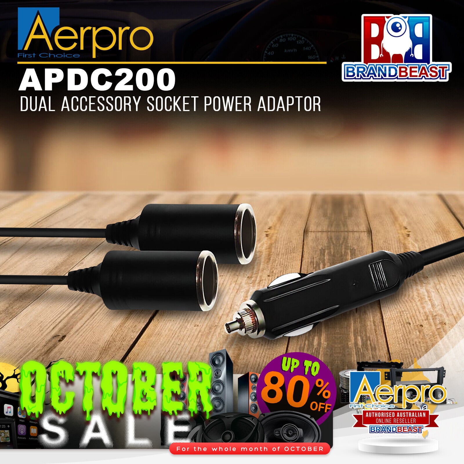 The Aerpro APDC200 allows the accessory socket in the vehicle to be split into two, so that two devices can be connected and powered at the same time. The dual sockets are separate from each other and the 0.2M length 18AWG cable is split, allowing the sockets to be positioned in different locations within the vehicle. The input/output is 12/24V direct pass through and the adaptor is rated to 10A max shared output.