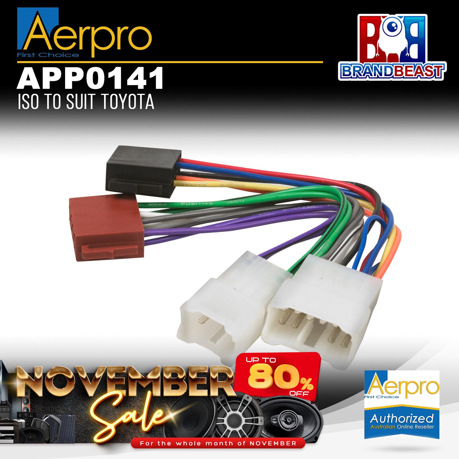 The Aerpro APP0141 is a Primary Harness designed to suit various Daihatsu, Holden, Lexus, Subaru, and Toyota vehicles with small two-plug connectors. It allows for the installation of an aftermarket headunit without the need to remove the factory wiring plug from the vehicle. APP0141 converts the factory headunit plug in the vehicle into a universal double ISO connector system. For simple plug-and-play headunit installation, add an Aerpro APP8 Secondary Headunit harness to suit your new aftermarket headunit and the two looms will connect together via the ISO connector system.