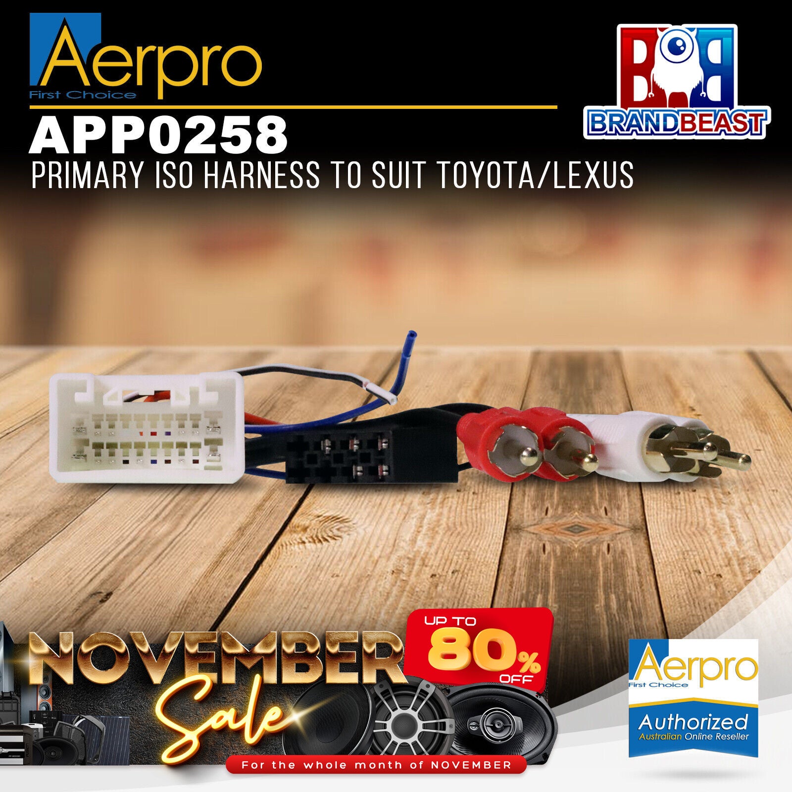 The APP0258 Allows You to Retain the Factory Amplified System in Your Toyota or Lexus when Upgrading to A Compatible Aftermarket Headunit. the Harness Plugs Into the Factory Toyota Plug Behind the Original Headunit and Converts It to 4 RCA Plugs, Which Connects to The RCA Inputs on The Rear of The Aftermarket Headunit (front and Rear). the Harness Also Provides an ISO Connector for Power and Earth Connections. to Simplify the Installation Process, Add an Aerpro APP8 Aftermarket Headunit ISO Harness Which Will Connect from The Aftermarket Headunit Directly to This Harness.