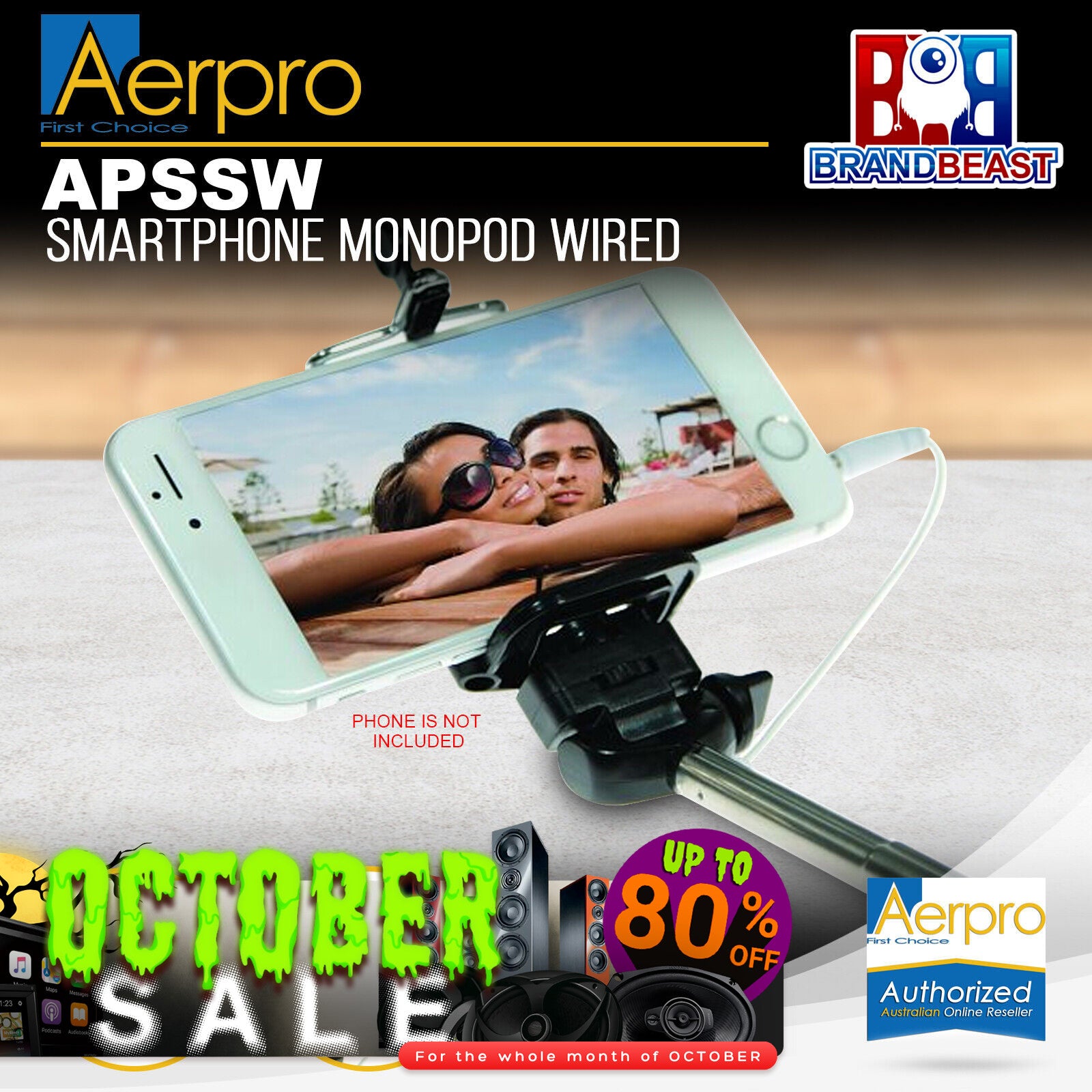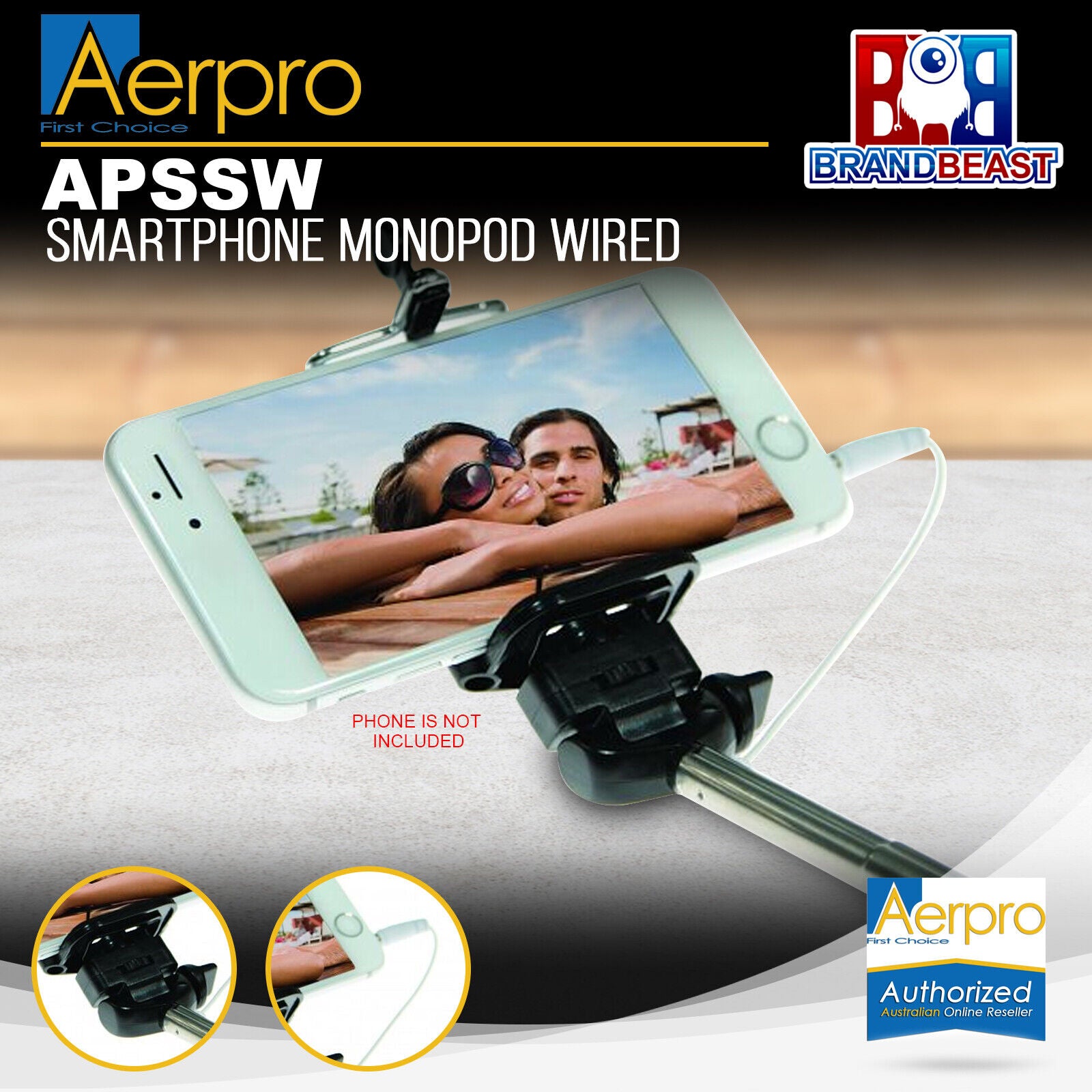 Aerpro APSSW Smartphone Monopod Wired with Built In Shutter Function