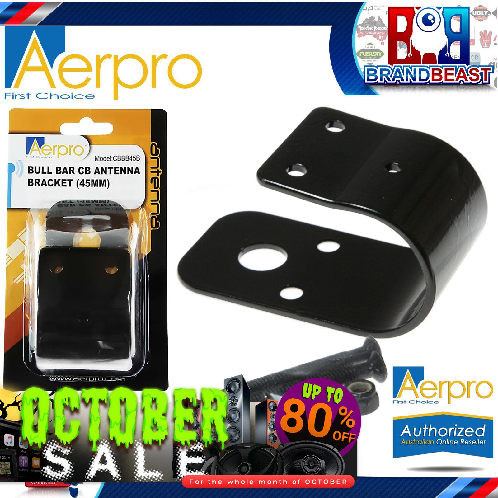 45mm Wrap-Around Bullbar Mount UHF Antenna BracketThe Aerpro CBBB45B has been designed to be mounted on any bullbar with a diameter of 45mm. The wrap-around design offers the most secure mounting bracket solution for UHF antennas on bullbars, making it suitable for all types of UHF antennas including heavy-duty models. Made from a 2.8mm thick Q235 iron plate painted black for corrosion protection, this high-quality bracket will withstand harsh on-road and off-road driving environments. The Aerpro CBBB45B has a 16.4mm opening for the antenna to mount, making it suitable for use with all brands of UHF CB Antennas in Australia and New Zealand that have a 16mm mounting thread. It can also be mounted anywhere along a bullbar giving you more options if other accessories such as light bars are fitted. All mounting hardware is included.Features: