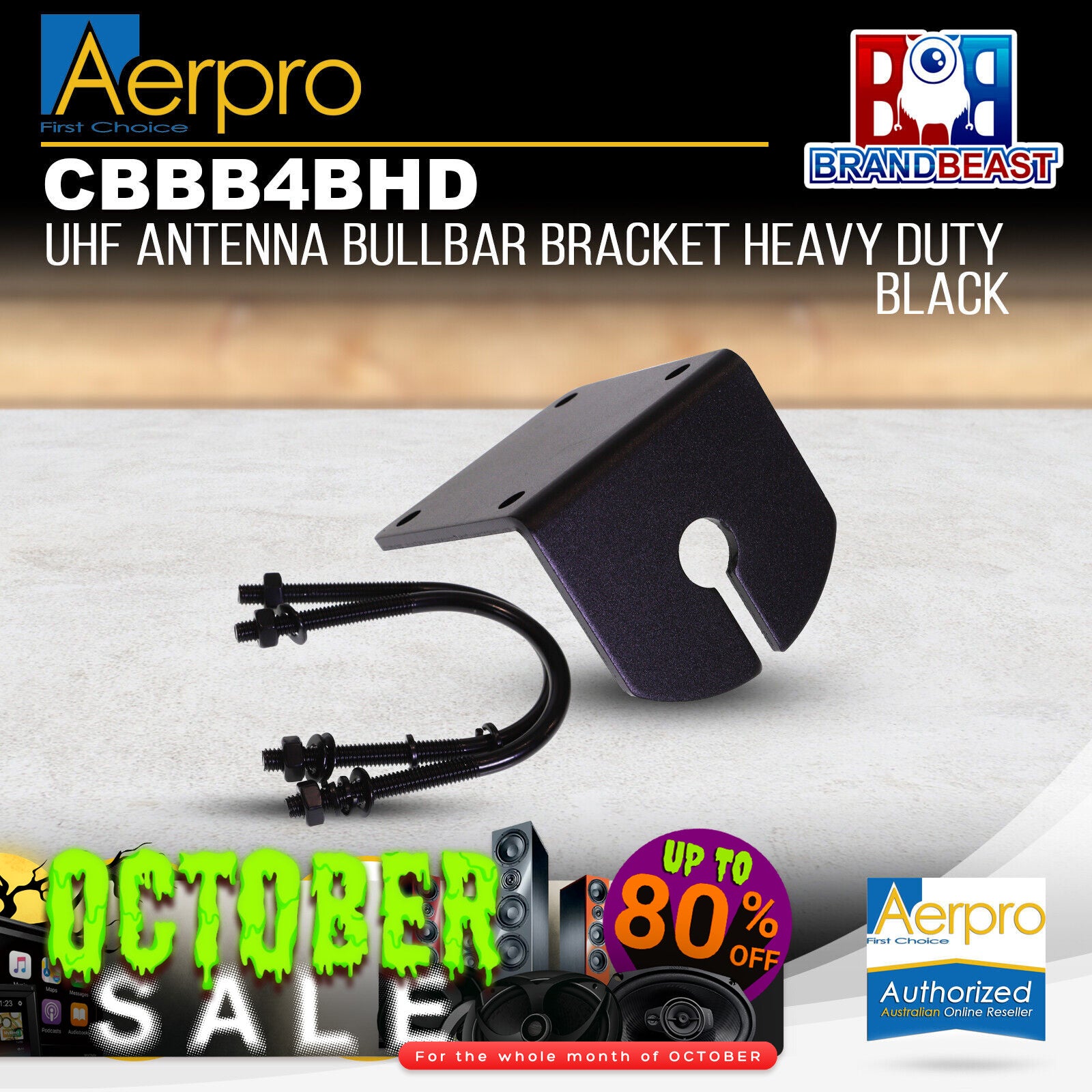 The Aerpro CBBB4BHD Black Aluminium Universal Bullbar Mount UHF Antenna Bracket has been designed to mount on any bullbar with a diameter between 40 to 52mm. This mounting bracket has a right angle plate and comes supplied with two 55mm U shaped clamps and is designed to position the antenna in a vertical position.
