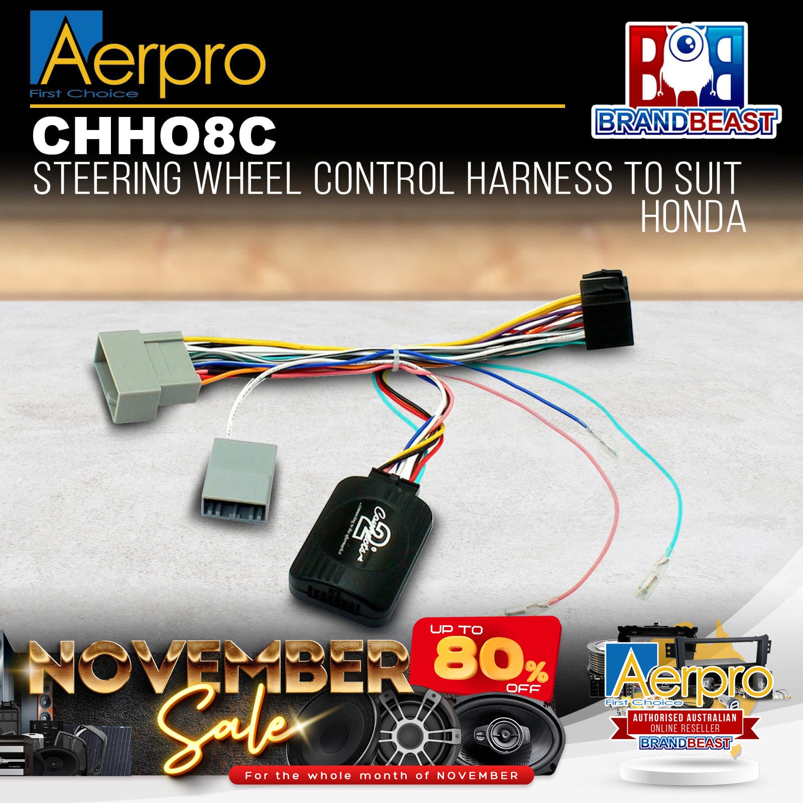 Aerpro CHHO8C Steering Wheel Control Harness to Suit Honda Jazz/City/HR-V