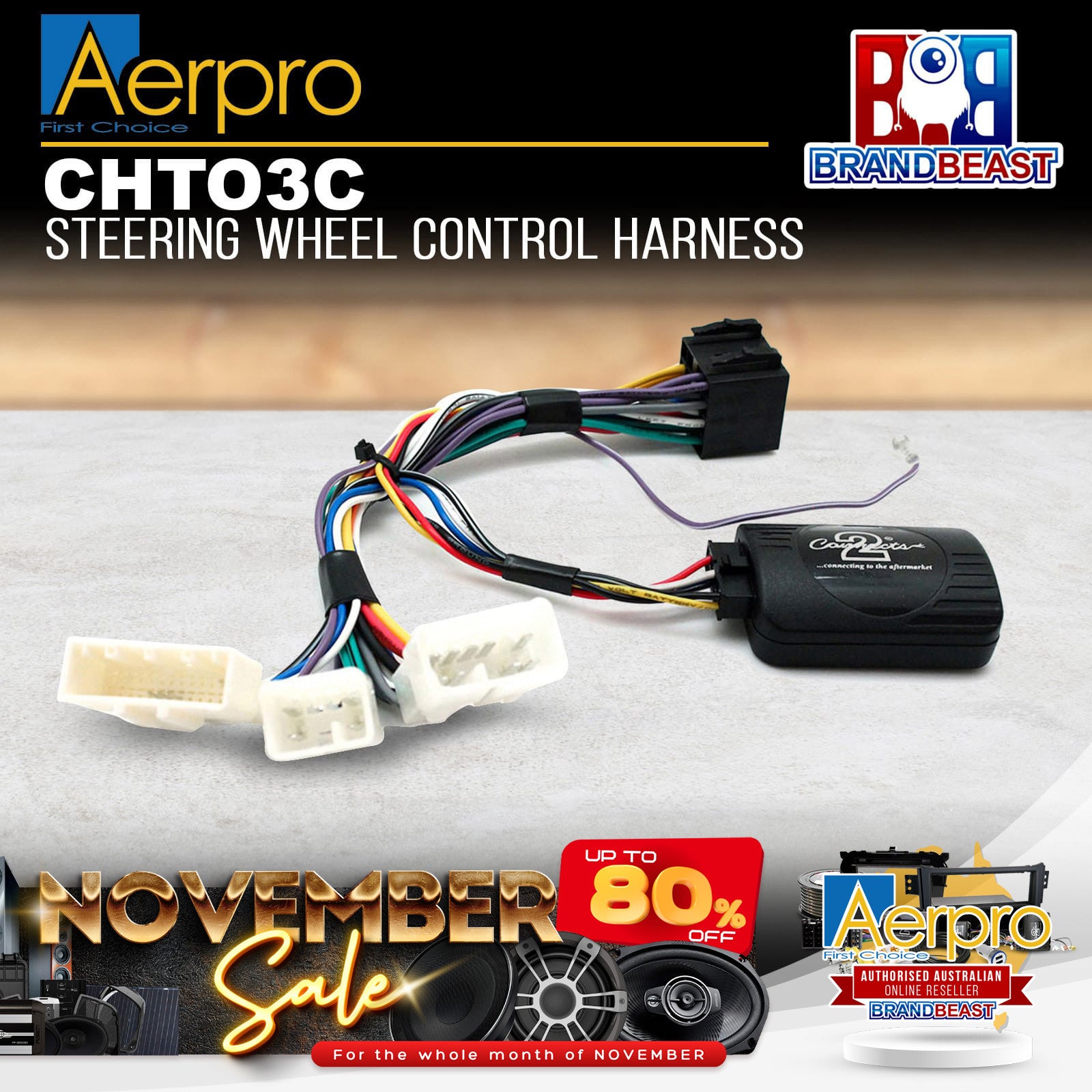 The Aerpro CHTO3C allows you to upgrade to an aftermarket headunit whilst maintaining use of your factory steering wheel controls. Engineered to suit various Toyota vehicles with 28 pin connector, the steering wheel control interface includes a harness that is fitted with a vehicle specific plug designed to connect directly into the existing wiring in the vehicle with ease, no cutting of the factory wiring harness in the vehicle is required.