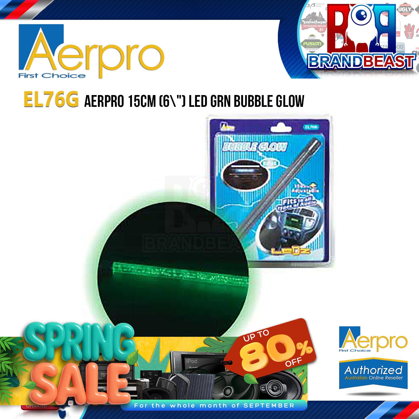 Aerpro EL76G 6" Green LED Light Dual Bubble Glow