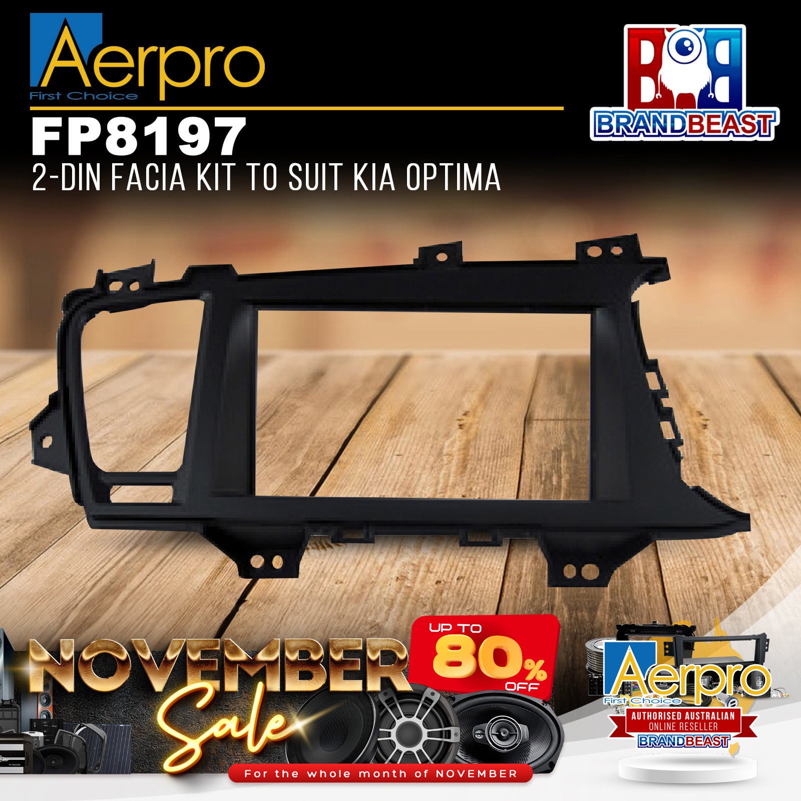 The Aerpro FP8197 Fascia Kit provides all the necessary hardware to suit a 2-DIN head unit installation into an Kia Optima with black trim.