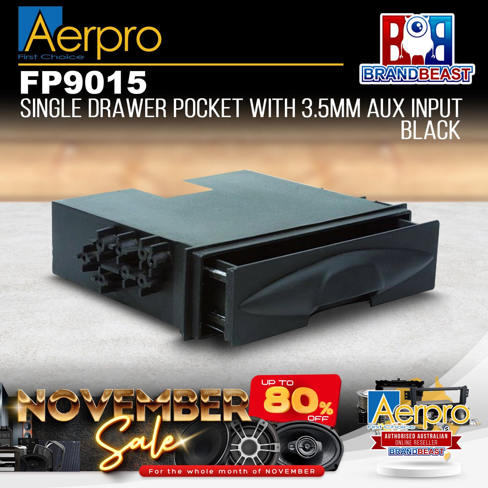 Aerpro FP9015 Single Drawer Pocket With 3.5mm AUX Input - Black