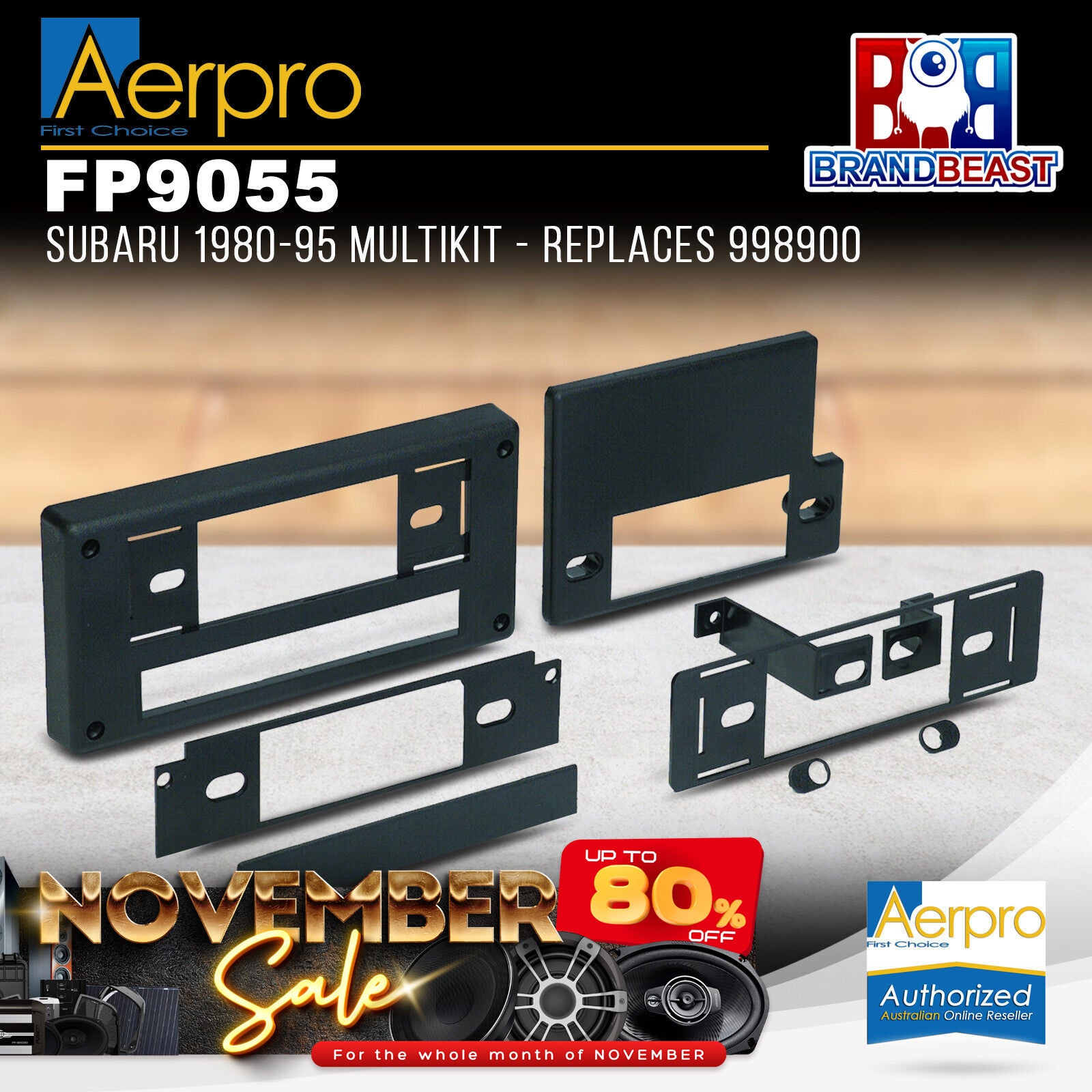 The Aerpro FP9055 Multi-Kit Facia comprises moulded facia plates to suit DIN or shaft mount aftermarket radio. Also provides space for 1/4 or 1/2 DIN equaliser. Packed in poly bag with full-colour header. The multi-purpose kit offers quick conversion from Shaft type to DIN. Fits Subaru: RX, Legacy, Loyale, DL, GL.