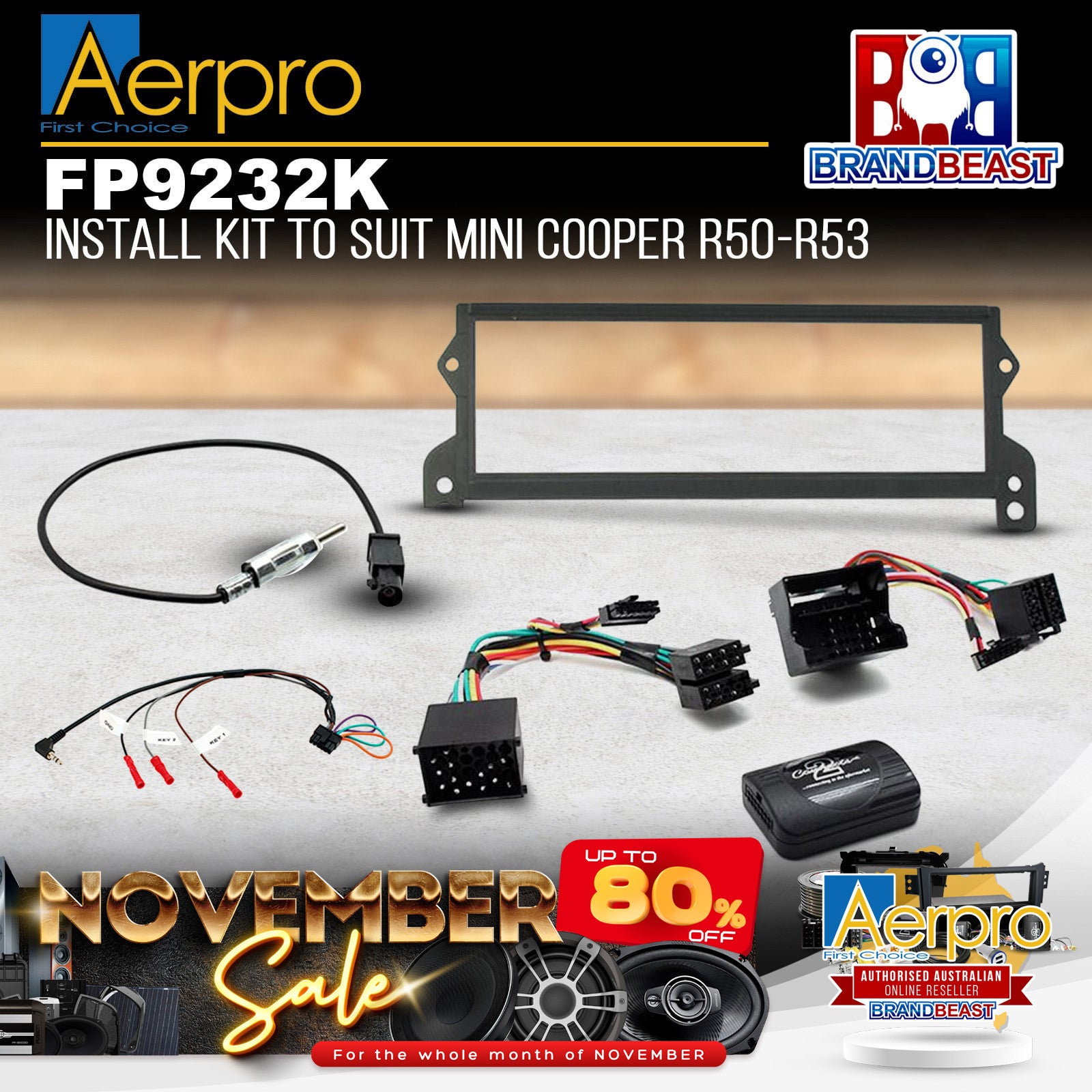 The Aerpro FP9232K install kit contains all the components required to install a single-DIN aftermarket headunit into an Mini R50, R52 & R53 whilst retaining full use of the factory steering wheel controls. All that you require to complete the install will be a brand-specific secondary harness to suit your chosen headunit which can be found HERE.