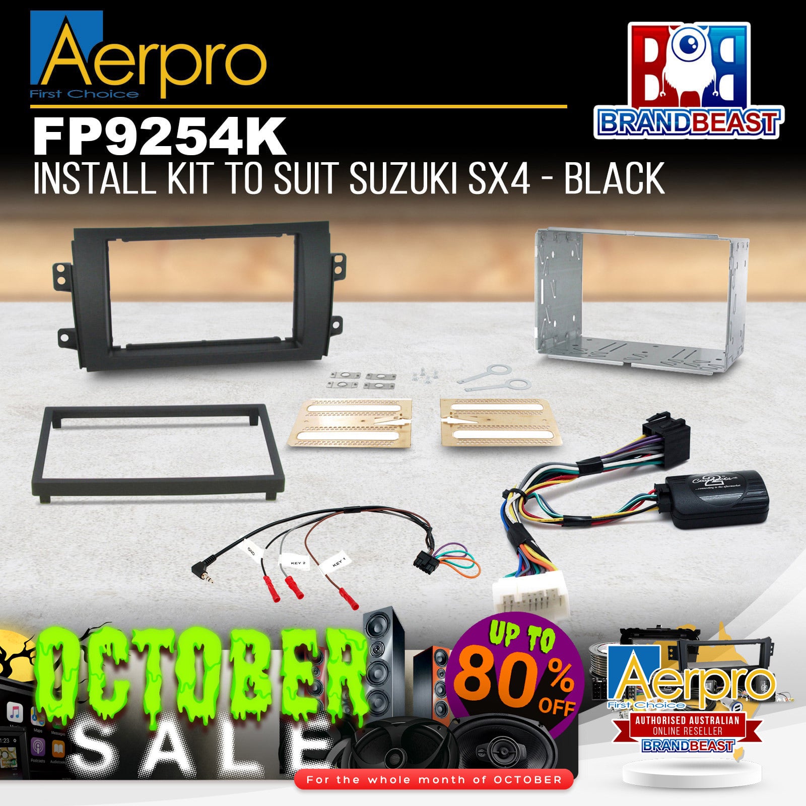 Double DIN Headunit Installation Kit - BlackComplete a full aftermarket Double DIN headunit installation in your Suzuki SX4 (2007 - 2013) from start to finish with this Aerpro vehicle-specific headunit installation kit, containing everything you need for a perfect upgrade in one box. This kit includes a facia kit, mounting cage, trim ring, steering wheel control interface, and universal patch lead. To make the installation process even easier, simply add Aerpro APP8 or APP9 aftermarket headunit harness adapters which will connect from the aftermarket headunit directly to the steering wheel control interface harness supplied in this kit.