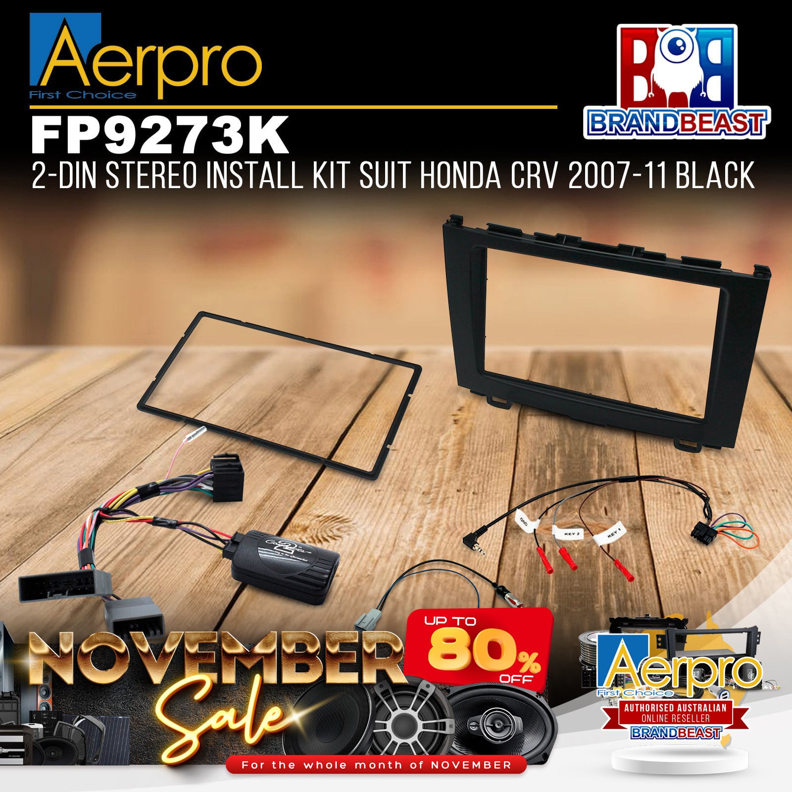 Double DIN Install Kit - BlackComplete a full aftermarket double din headunit installation in your Honda CRV RE (2007 - 2011) from start to finish with this Aerpro vehicle-specific headunit installation kit, containing everything you need for a perfect upgrade in one box. This kit includes a facia kit, trim ring, steering wheel control interface, antenna adapter, and universal patch lead. To make the installation process even easier, simply add Aerpro APP8 or APP9 aftermarket headunit harness adapters which will connect from the aftermarket headunit directly to the steering wheel control interface harness supplied in this kit.