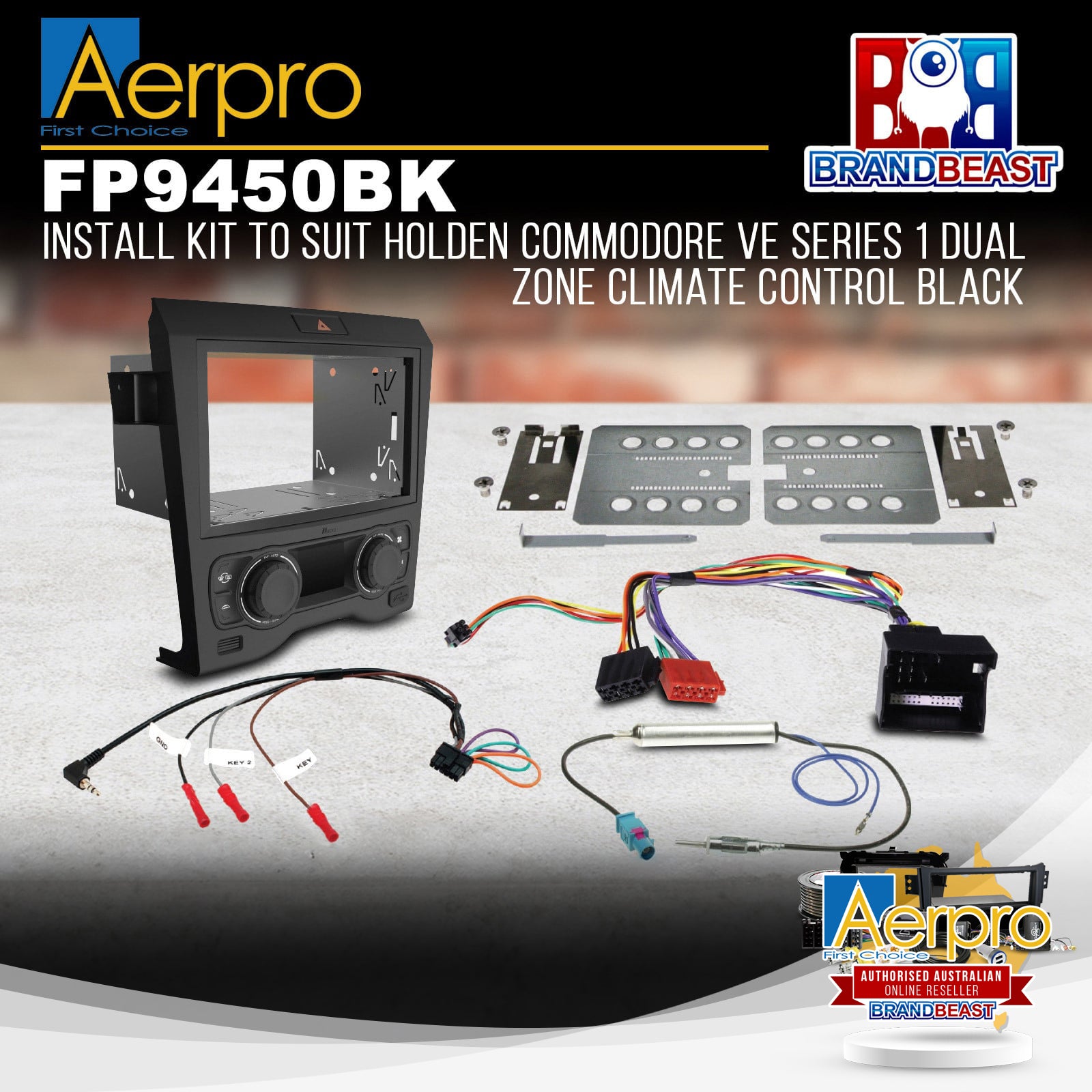 Complete a full aftermarket double din head unit installation in your Holden Commodore VE Series 1 (2006-2011) with dual-zone climate control, from start to finish with this Aerpro vehicle-specific head unit installation kit, containing everything you need for a perfect upgrade in one box. This kit includes a facia kit with a built-in H-VAC controller/display and steering wheel control interface, mounting cradle, vehicle-specific wiring loom, universal patch lead, and antenna adapter. To make the installation process even easier, simply add Aerpro APP8 or APP9 aftermarket head unit harness adapters which will connect from the aftermarket head unit directly to the steering wheel control interface harness supplied in this kit.