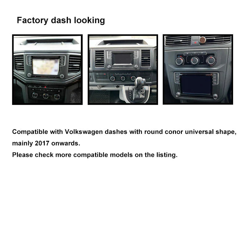 No, this kit specifically fits Amarok 2017-2022, Caddy 2015-2020, Crafter 2017+, Multivan 2016-2019, Tiguan 2015-2016, and Transporter 2016-2019 only. Other Volkswagen models have different dashboard architectures requiring specific kits. Verify your vehicle model and year before purchasing.