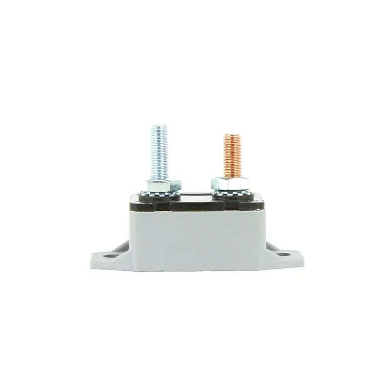 Featuring a black UL-rated thermoplastic body and grey cover, this breaker is designed for harsh environments, providing superior durability and consistent performance. The straight chassis-mount bracket and dual terminal configuration make installation simple and secure, while its automatic reset functionality ensures uninterrupted power when overload conditions are resolved.