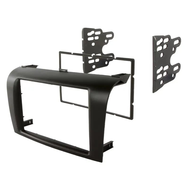 This fascia accommodates standard double DIN head units, perfect for modern touchscreen stereos and multimedia receivers.