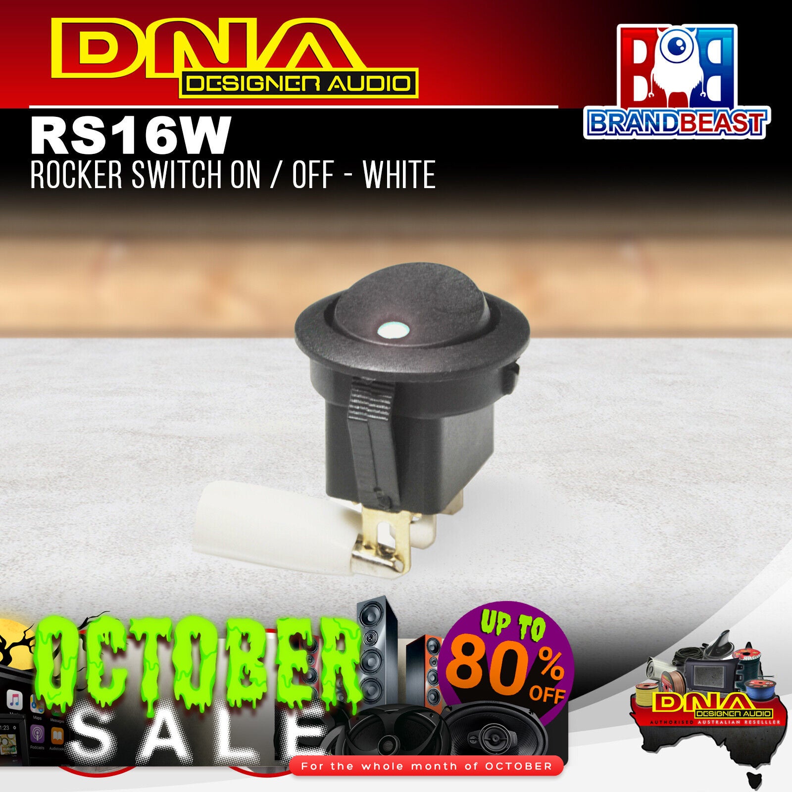 DNA RS16W 12 Volt Off/On Rocker Switch - White LED