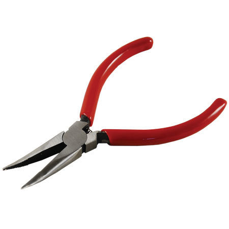 5" (125mm) Long Needle Nose Pliers With 15° Angle. Product Features: PVC Coated Handles For Extra Comfort. Side Flat Body Design Coil Spring Specifications: Length: 125mm (5") Material: S55C High Carbon Steel Hardness: Body 43 - 48 HRC Packaging: Blister & Card