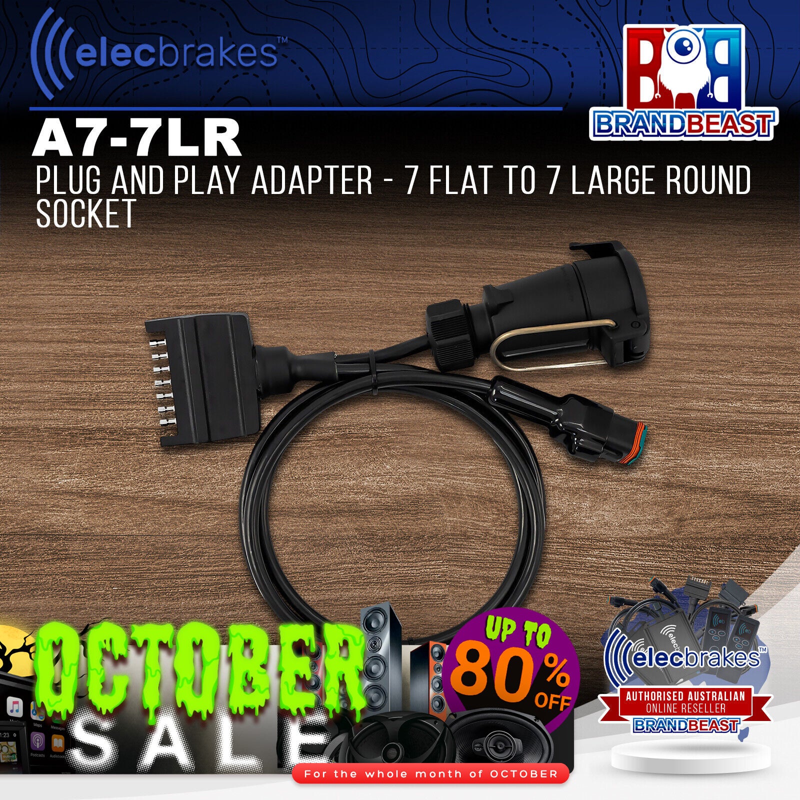 Elecbrakes A 7-7LR Plug and Play Adapter - 7 Flat to 7 Large Round Socket
