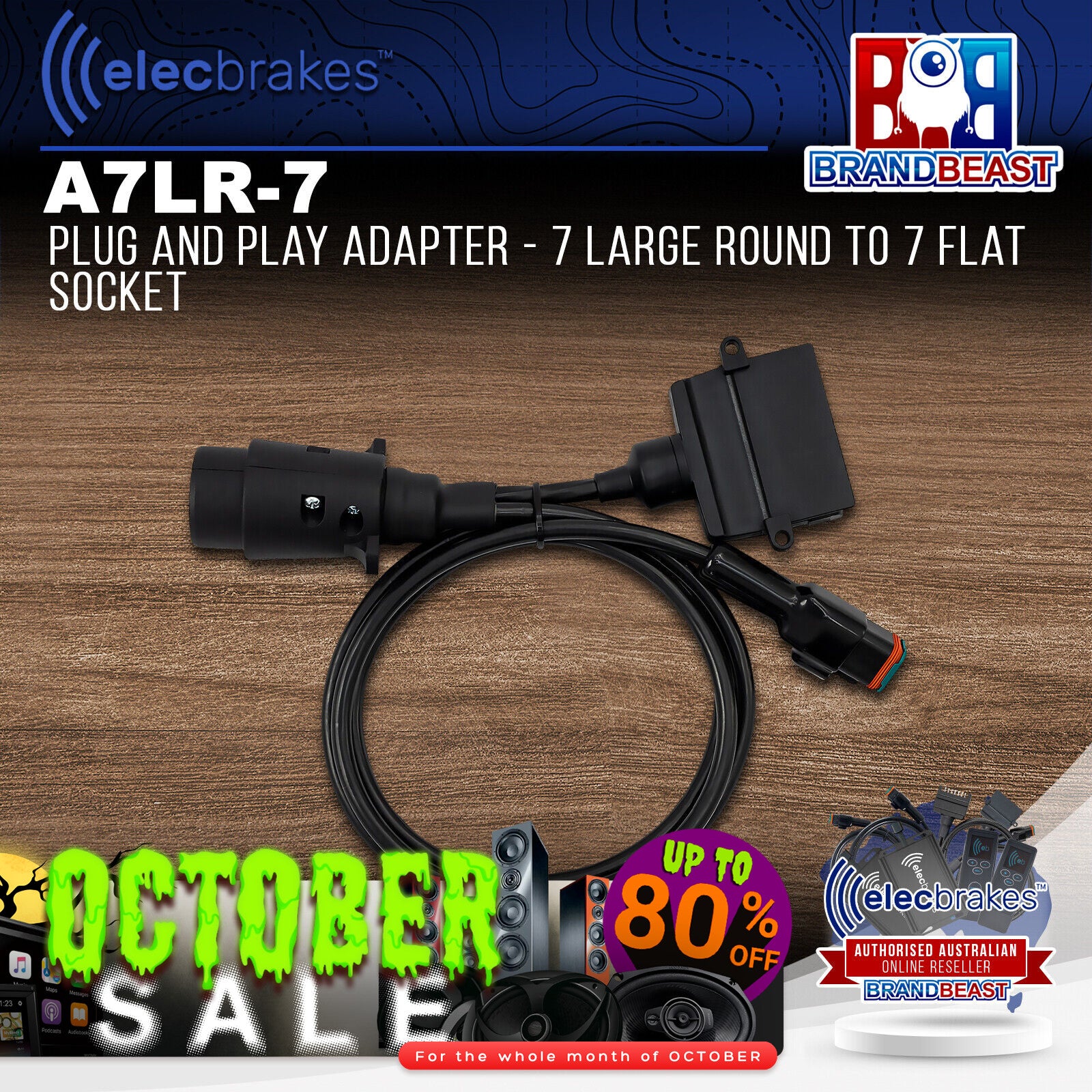 Elecbrakes A 7LR-7 Plug and Play Adapter - 7 Large Round to 7 Flat Socket