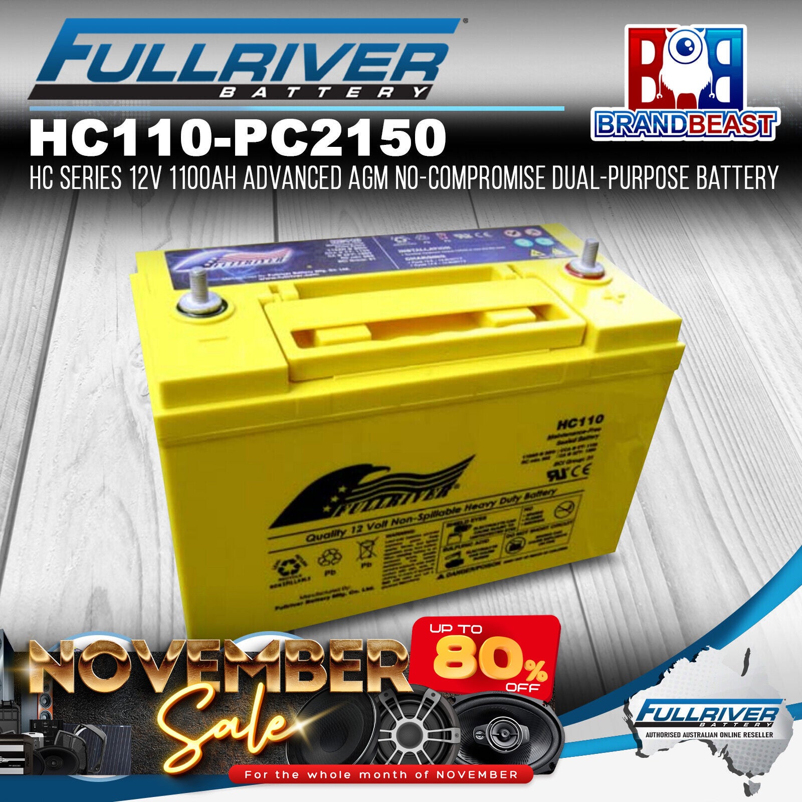 Fullriver HC110 - (PC2150 STUD) 12V 1100Ah Advanced AGM Dual-Purpose Battery