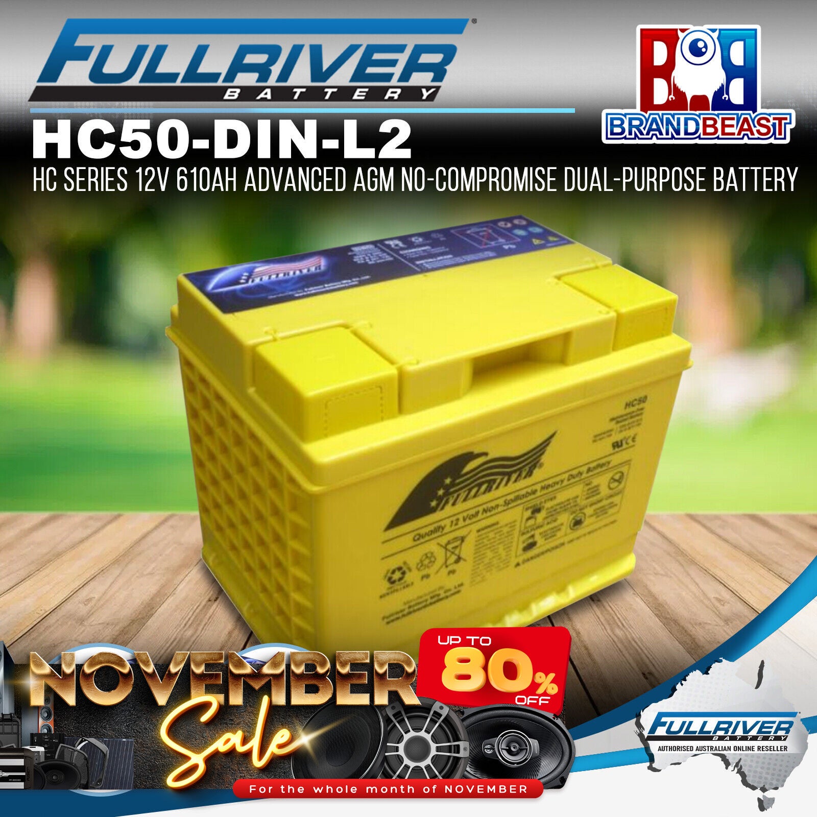 Fullriver - (DIN - L2) HC Series 12V 50Ah Advanced AGM No-Compromise Dual-Purpose Battery: High Capacity Starting Battery with Unrivaled Reserve Capacity to Power All Your Accessories