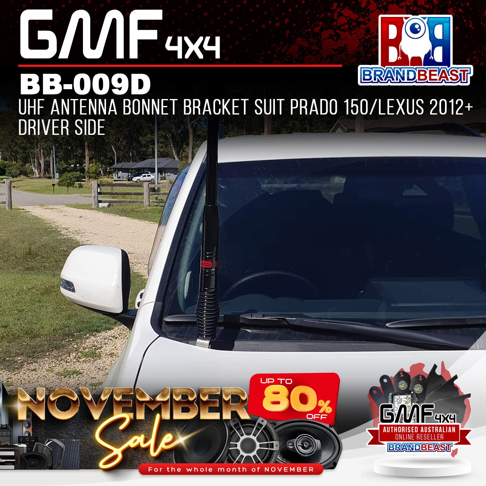 GMF4x4 BB-009D UHF Antenna Bonnet Bracket Suit Prado 150/Lexus 2012+ Driver Side