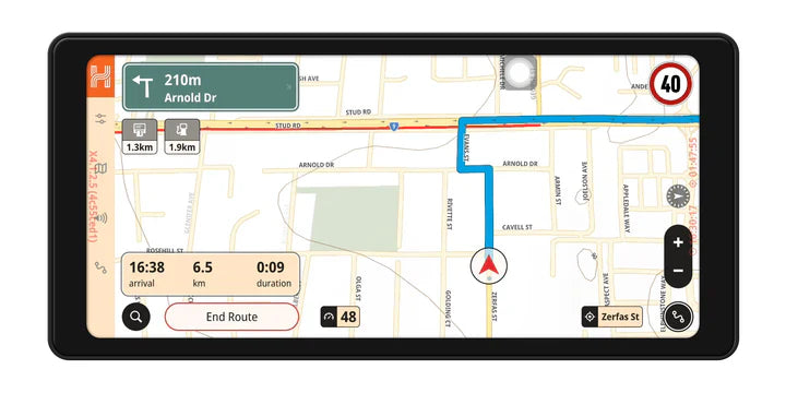 The included 3-year Hema Nav subscription covers live traffic, quarterly map updates via Wi-Fi, over 1.8 million Points of Interest including campsites, fuel stops, and caravan parks, 75 million kilometres of mapped roads and tracks, day and night display modes, track recording, and map customisation. Access to the Hema 4WD Maps app is available with a separate subscription, providing digitised Hema printed maps, regional 4WD content, route plotting, and Memory-Map integration.
