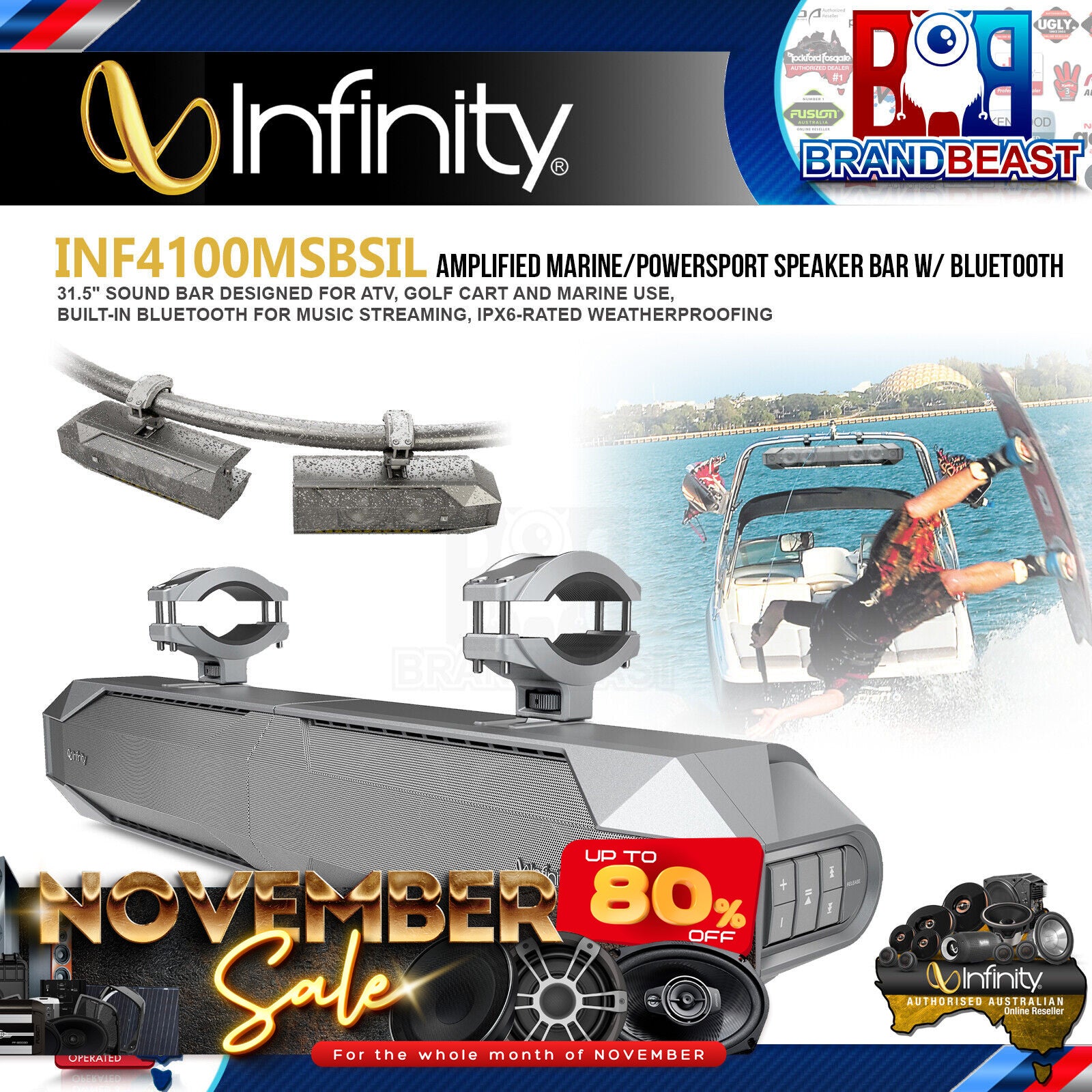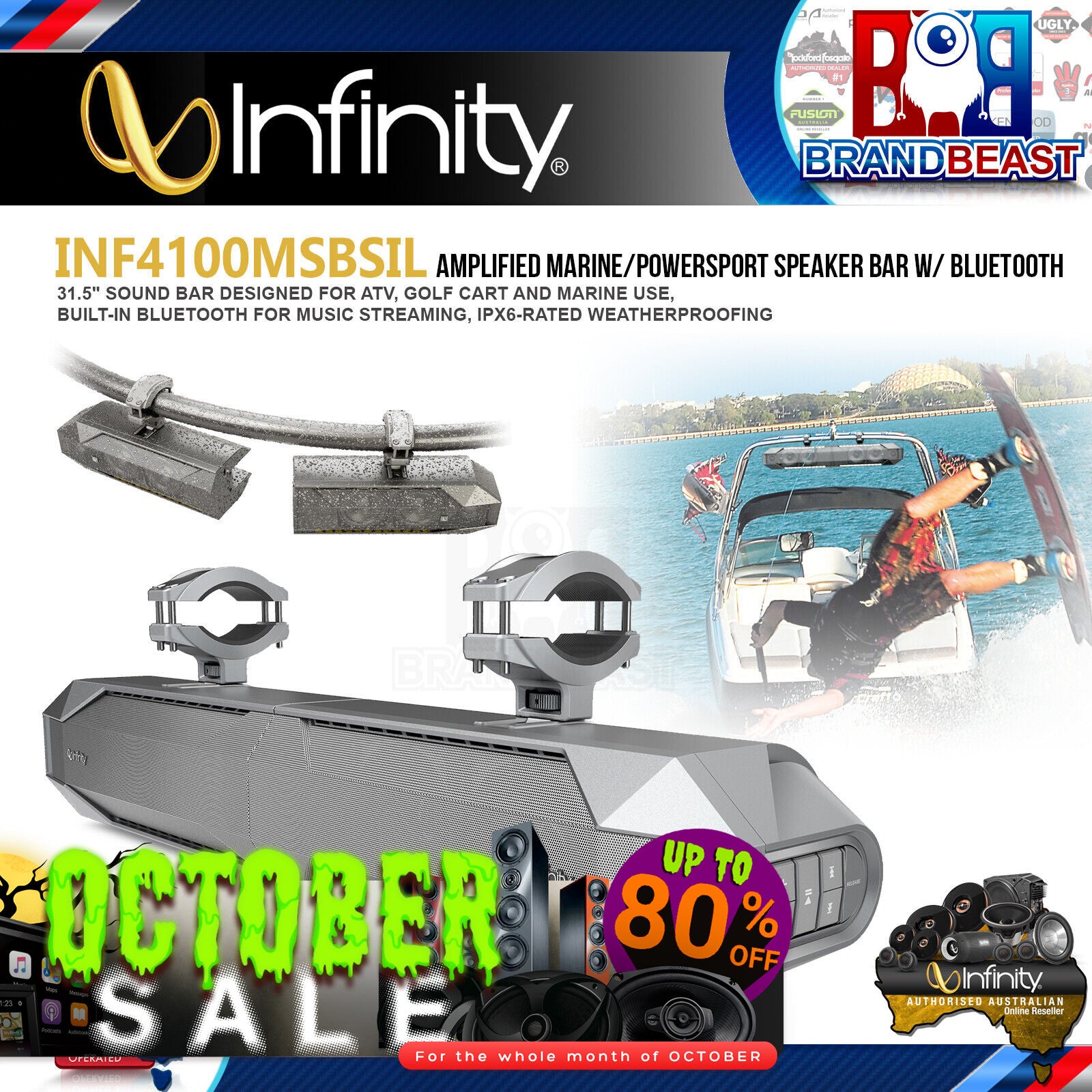 Standard-setting Infinity pro and home audio performance is now available for boaters. The new Infinity Kappa Marine Soundbar is designed for boats as well as other fun family vehicles. Take the helm and experience the sound of powerful INFINITY rollicking sound. (Try 105 dB at fifteen feet!) It's also equipped with a super flexible mounting system that will let you ride the waves and take a 10G shock knowing everything is still on board. You can also separate the soundbar into two speaker towers to optimize sound quality for any boat installation including pontoons. Bluetooth, 3.5mm and RCA output jacks allow you and your friends to take turns streaming playlists. There's a GoPro shoe for an action camera to share your most exciting moments. With a glowing red LED output display and ambient lighting, you're in the cockpit ready to do things you've never done before—be it on land or sea.