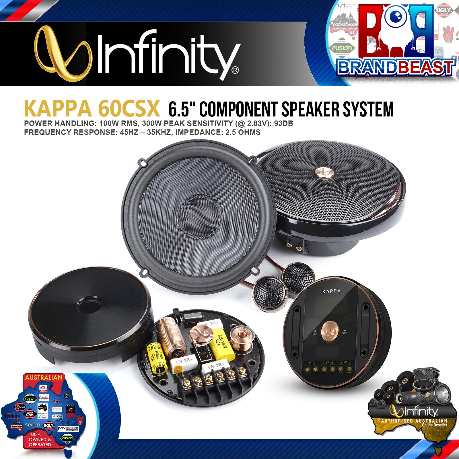 Speakers are individually tuned with outboard passive crossovers using audiophile grade inductors and capacitors to assure high quality audio versus “off-the-shelf” sound. This means that specifications as well as speaker characteristics are considered when tuning the Infinity sound.