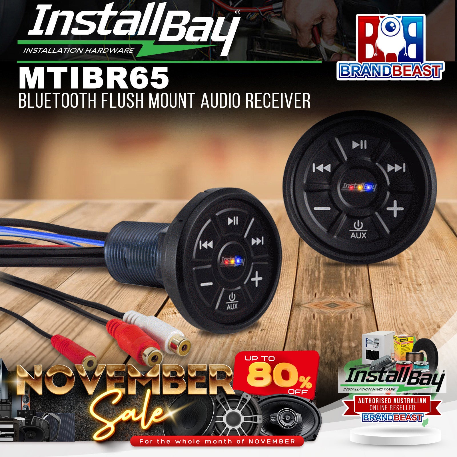 Install Bay Bluetooth Flush Mount Receiver The Install Bay Bluetooth receiver lets you have your Bluetooth audio device at your fingertips. With its flush installation design, this Bluetooth control pad is a great way to have the features of a Bluetooth audio equipped head unit without the fuss of mounting a full DIN head unit. With the added bonus of 3.5mm AUX input (from the rear) you can also play your portable music device or any 3.5mm headphone jack audio into the unit which is switched by the control pad. Backlit with Blue LEDs, this unit is a great addition to any Hot Rod, Muscle Car, PowerSports ATV, Boat, Jetski or Caravan. Features: