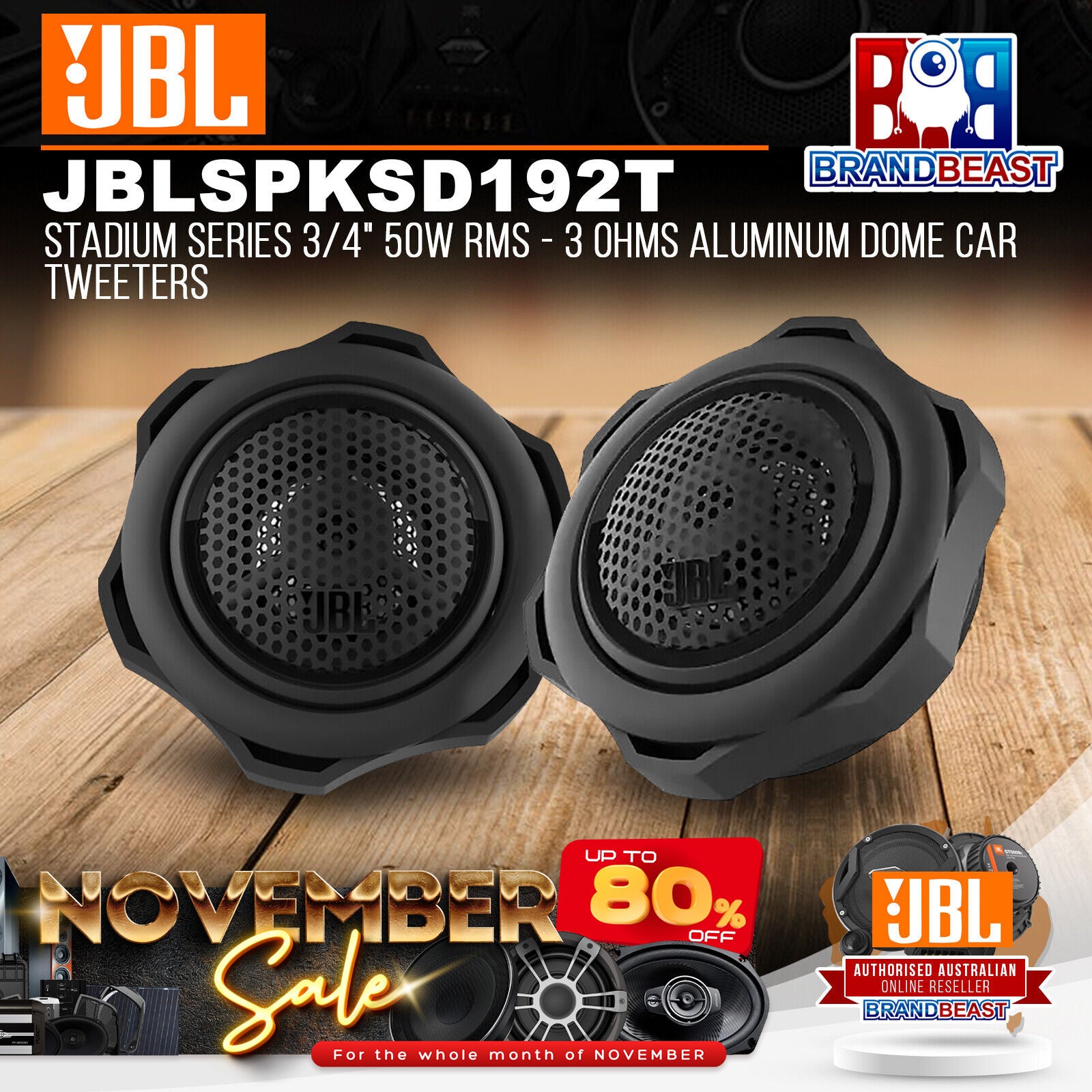 JBL Stadium 192T Stadium Series 3/4" 50W RMS - 3 Ohms Aluminum Dome Car Tweeters VendorJBL Share WhatsApp Deel X Pin it Messenger Email Sale -16% Out of stock JBL Stadium 192T Stadium Series 3/4" 50W RMS - 3 Ohms Aluminum Dome Car Tweeters VendorJBL Share WhatsApp Deel X Pin it Messenger Email Product form Stadium Series Dome Car Tweeters from JBL! JBL Stadium series 3/4" aluminum dome car tweeters. Features: 150 Watts Max, 50... Read more SKU: JBLSPKSD192T $189.95 $159.99 Incl. GST