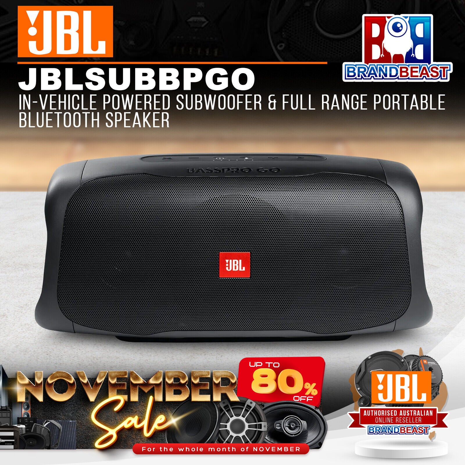 Enjoy your music wherever you are with the JBL BassPro Go. This multi-functional speaker is the first car subwoofer that can also be used as a portable bluetooth speaker.