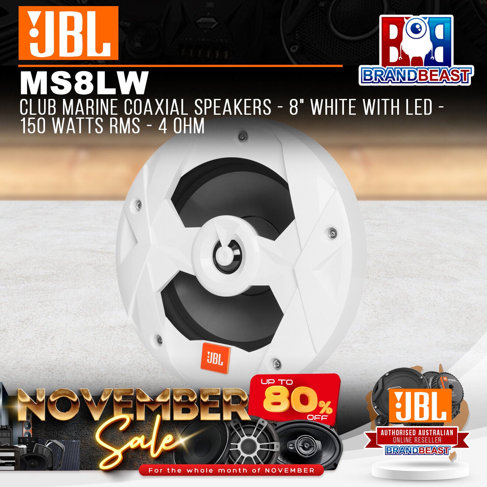 JBL MS8LW Club Marine Coaxial Speakers - 8" White with LED - 150 Watts RMS - 4 Ohm