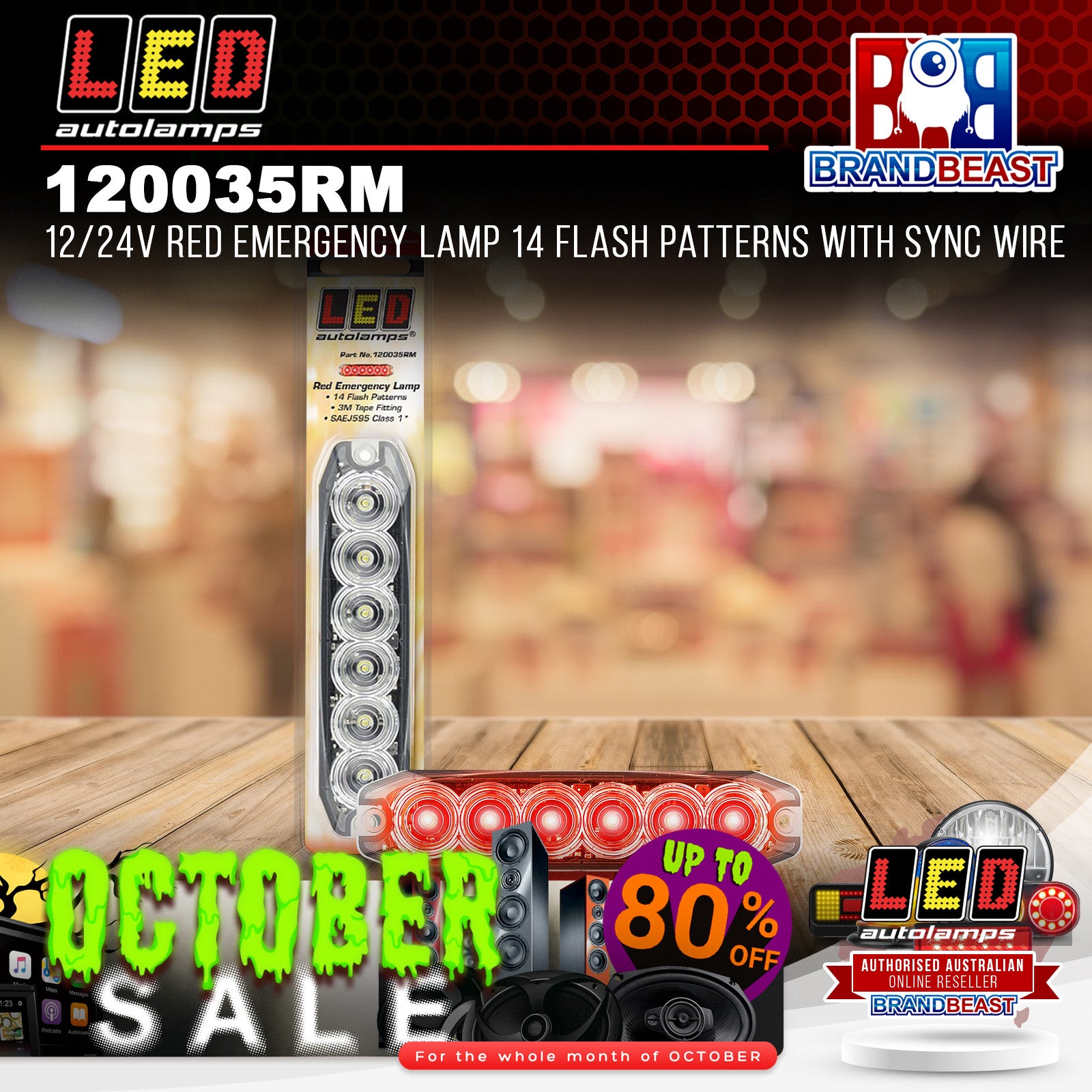 LED Autolamps 120035RM 12/24V Red Emergency Lamp 14 Flash Patterns Sync Wire