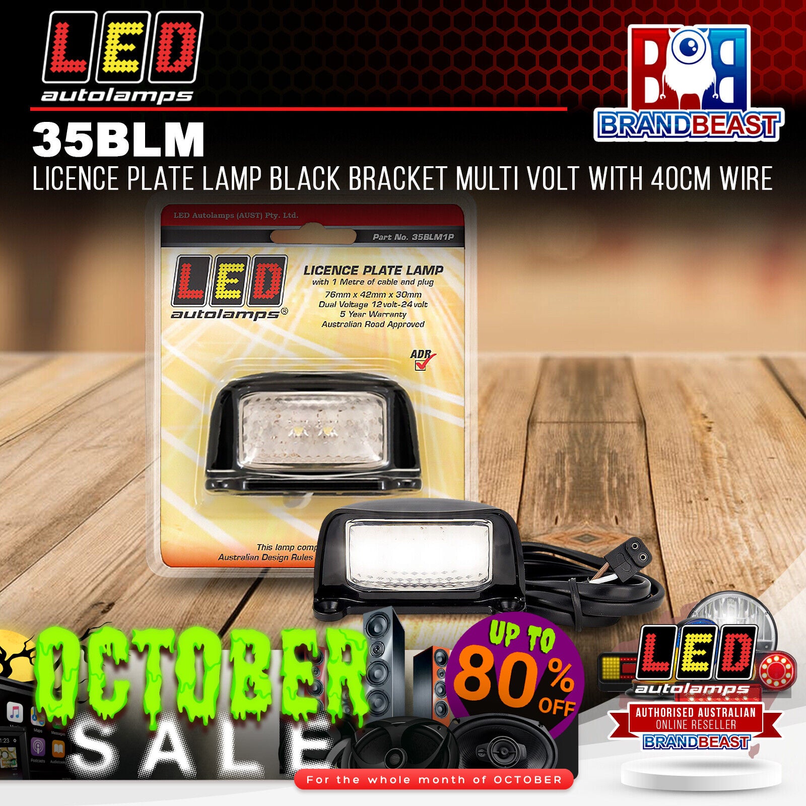 LED Autolamps 35BLM Licence Plate Lamp Black Bracket Multi Volt With 40cm Wire