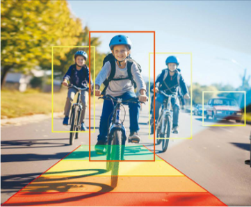 The onboard AI processor analyzes video in real time to identify pedestrians, cyclists, and vehicles entering the camera's view, then sends audio/video alerts to your monitor before potential collisions occur.