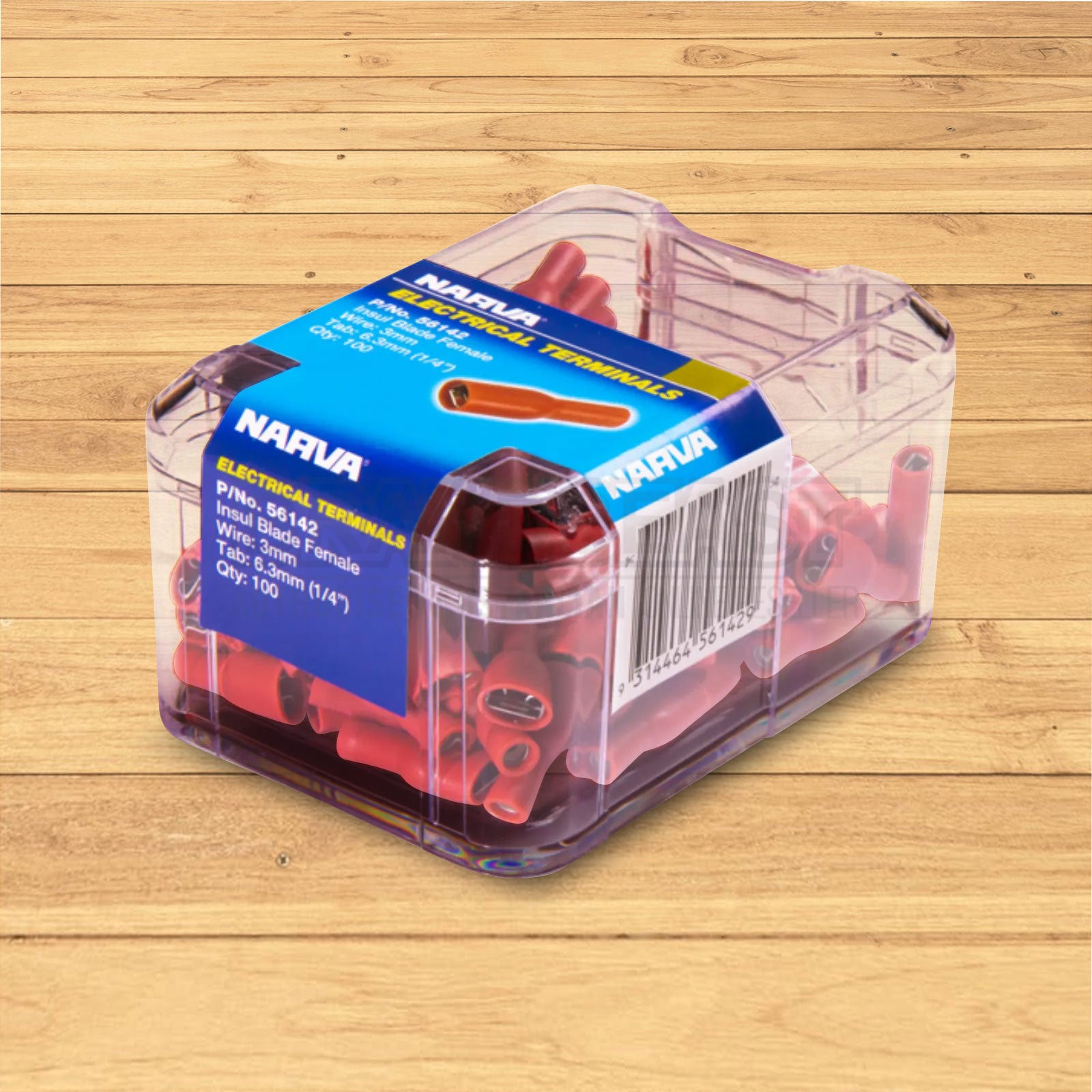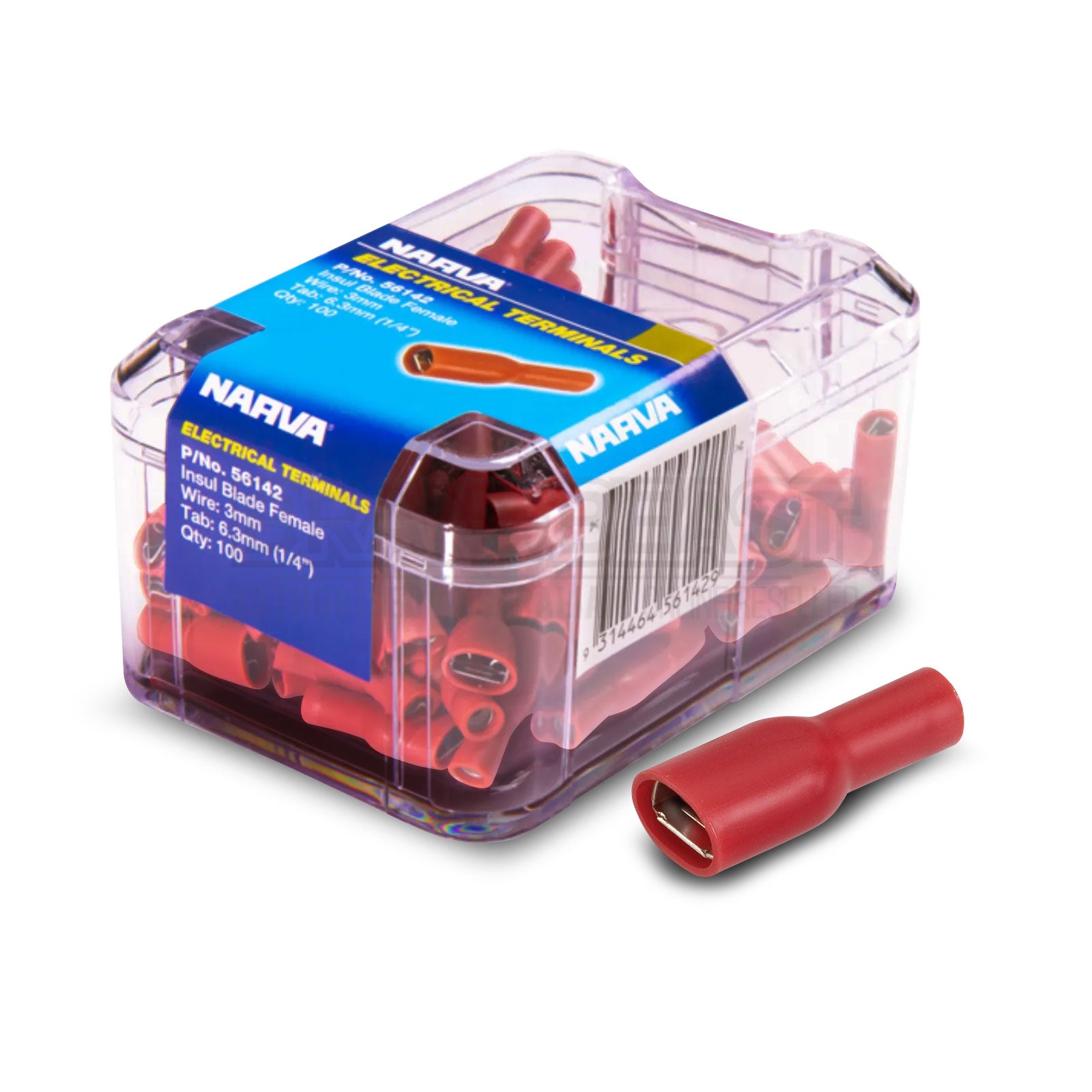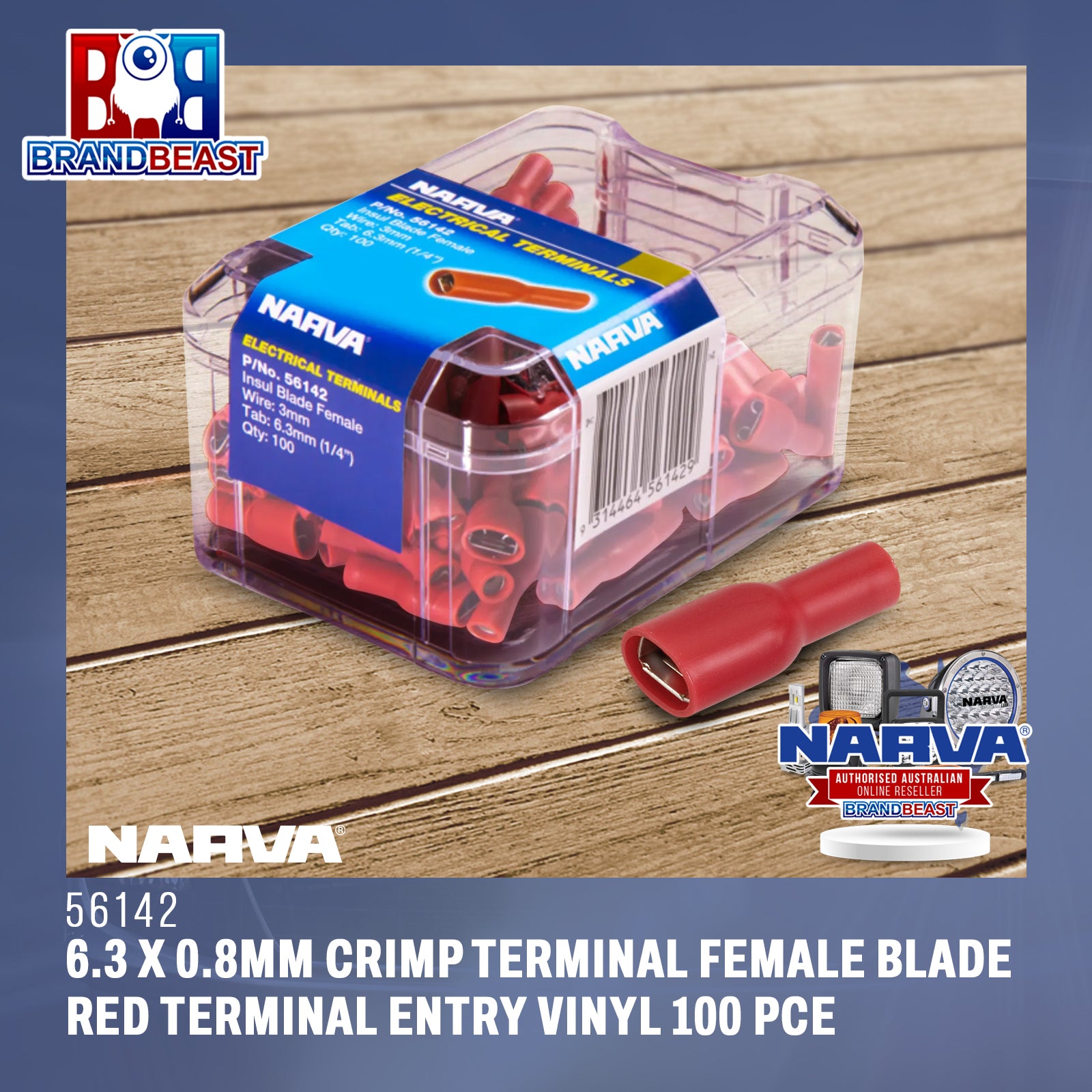 Narva Crimp Terminal Female Blade Red Terminal Entry 6.3 x 0.8mm Vinyl 100 Pce