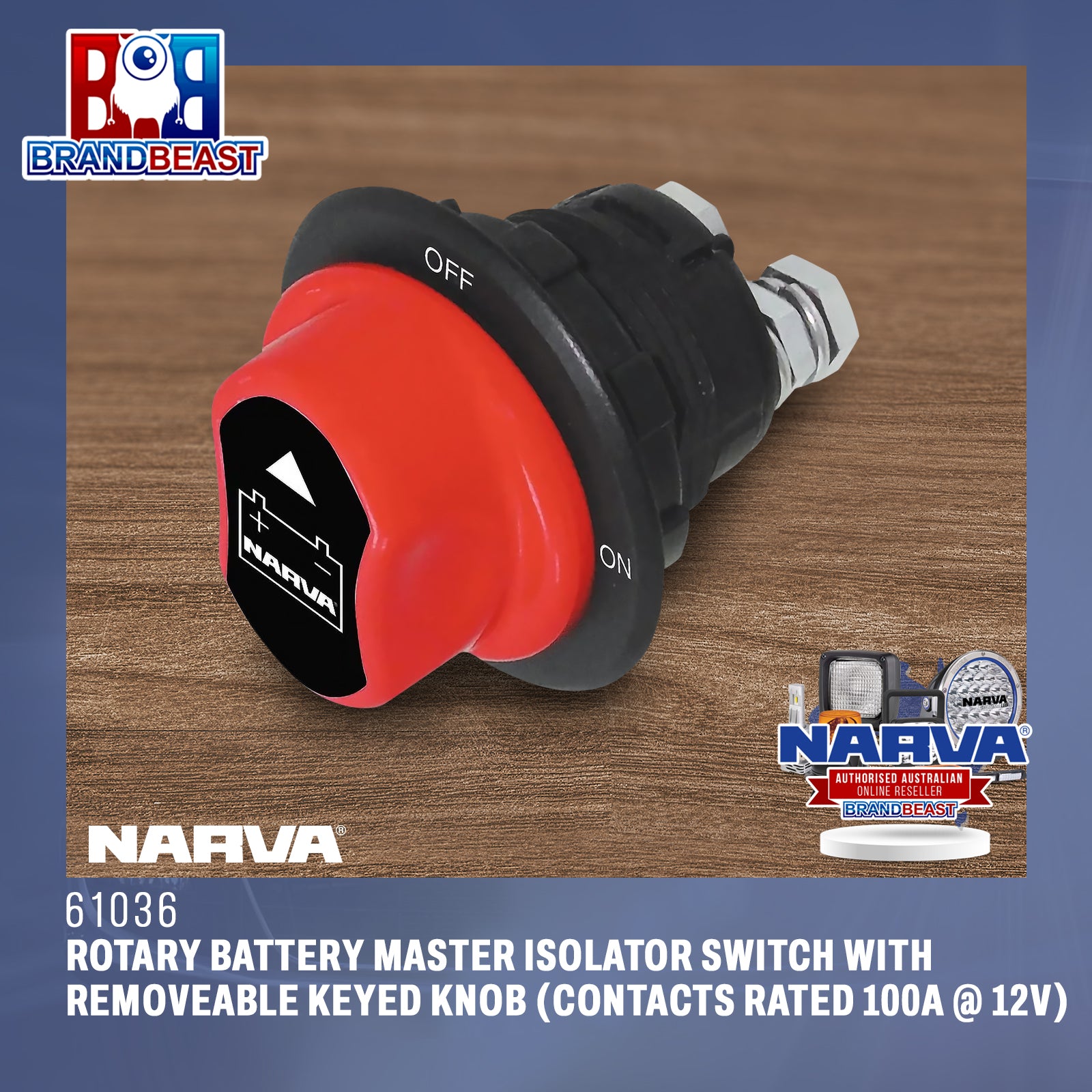 Narva Rotary Battery Master solator Switch With Removeable Keyed Knob (Contacts Rated 100A @ 12V)
