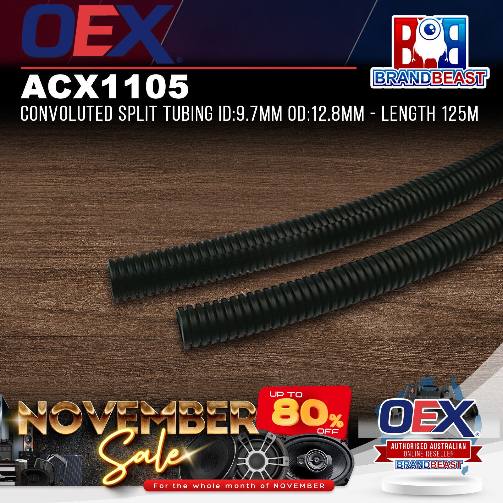 OEX ACX1105 Convoluted Split Tubing ID:9.7mm OD:12.8mm - Length 125m