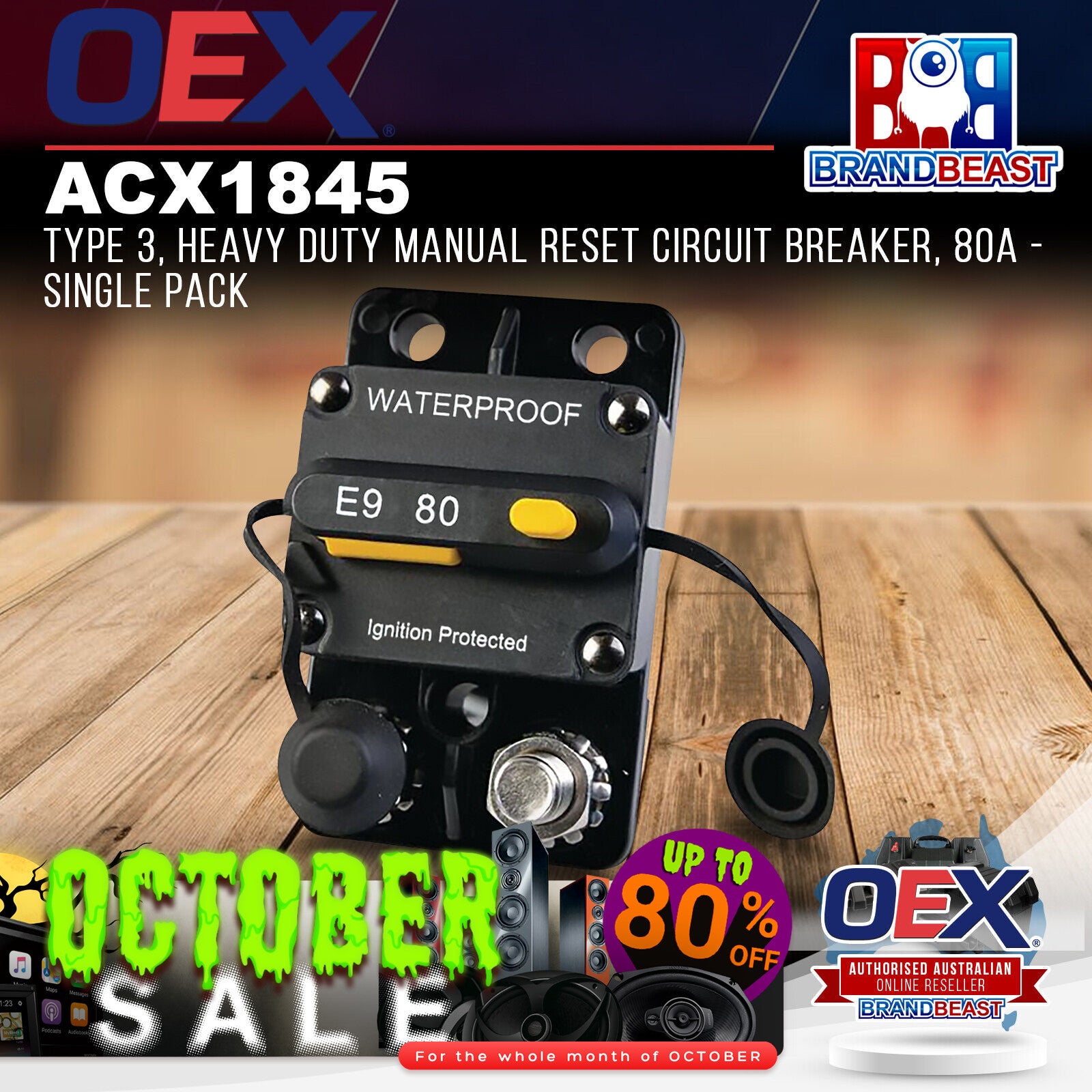 OEX ACX1845 Type 3 Heavy Duty Manual Reset Circuit Breaker 80A - Single Pack