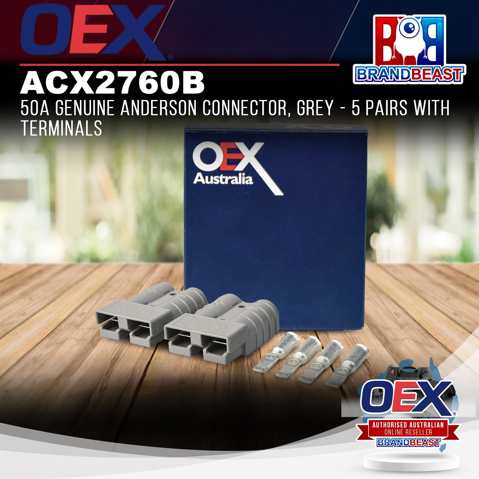 OEX ACX2760B 50A Genuine Anderson Connector Grey - 5 Pairs with Terminals