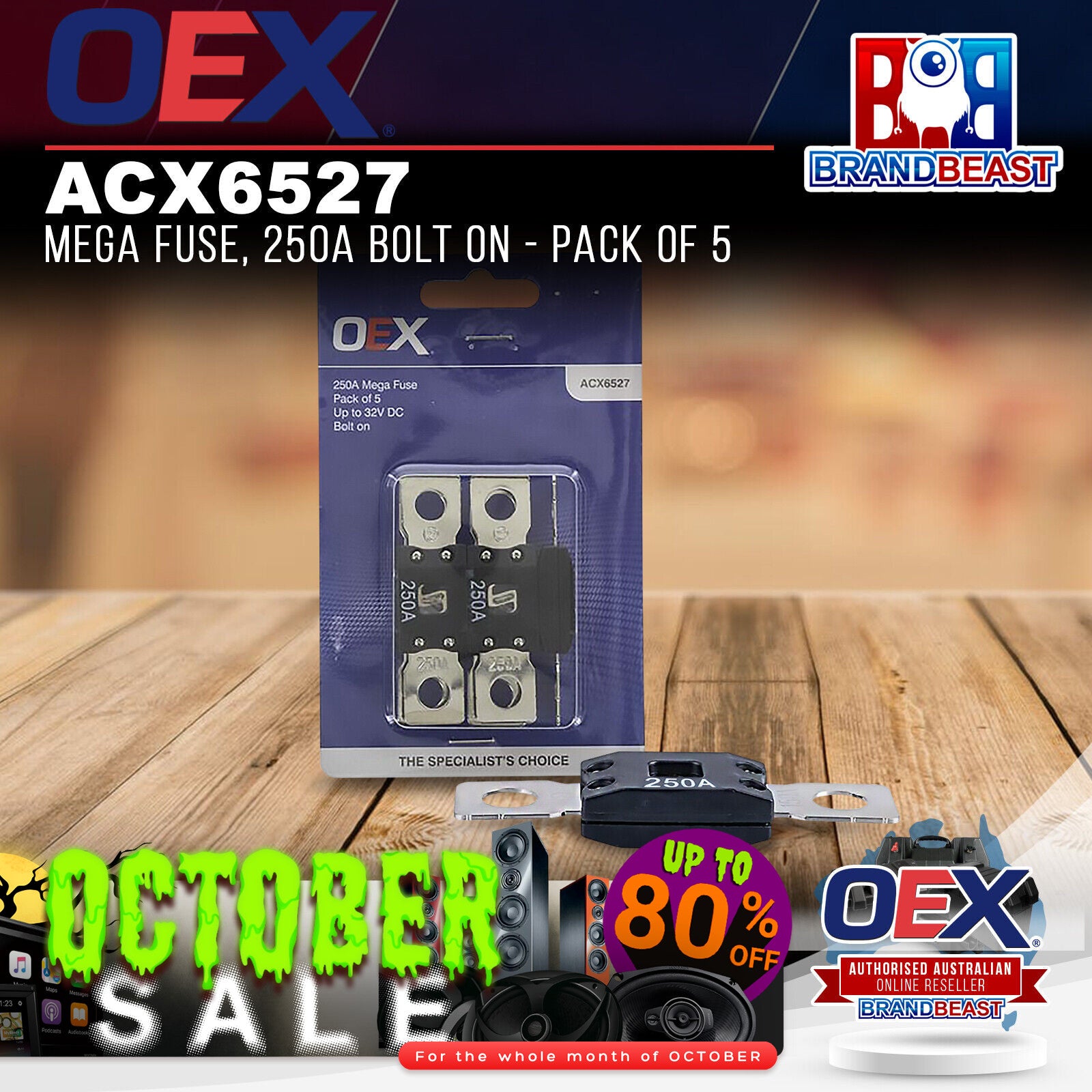 OEX ACX6527 Mega Fuse, 250A Bolt On - Pack of 5