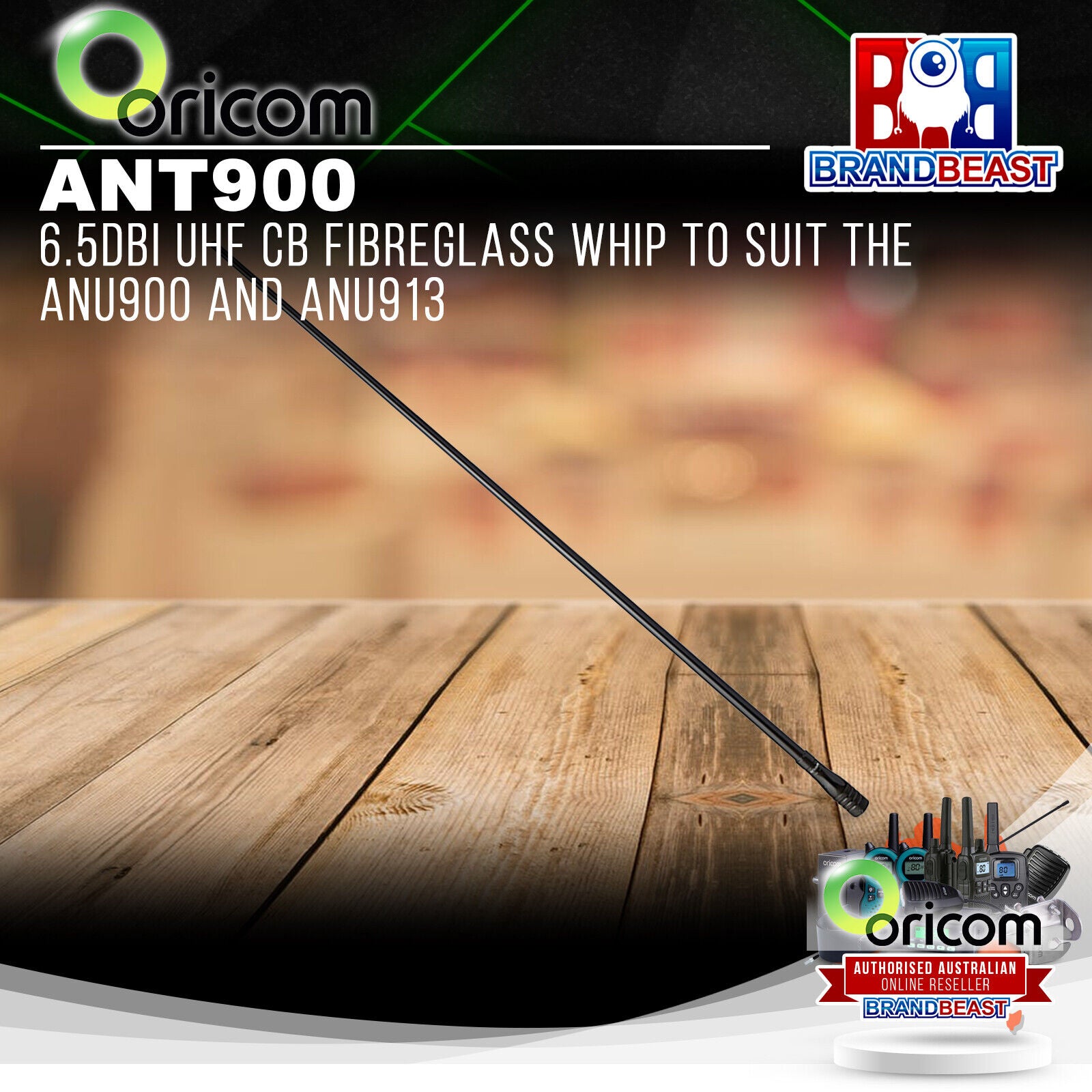 Oricom ANT900 6.5dBi UHF CB Fibreglass Whip to suit the ANU900 and ANU913