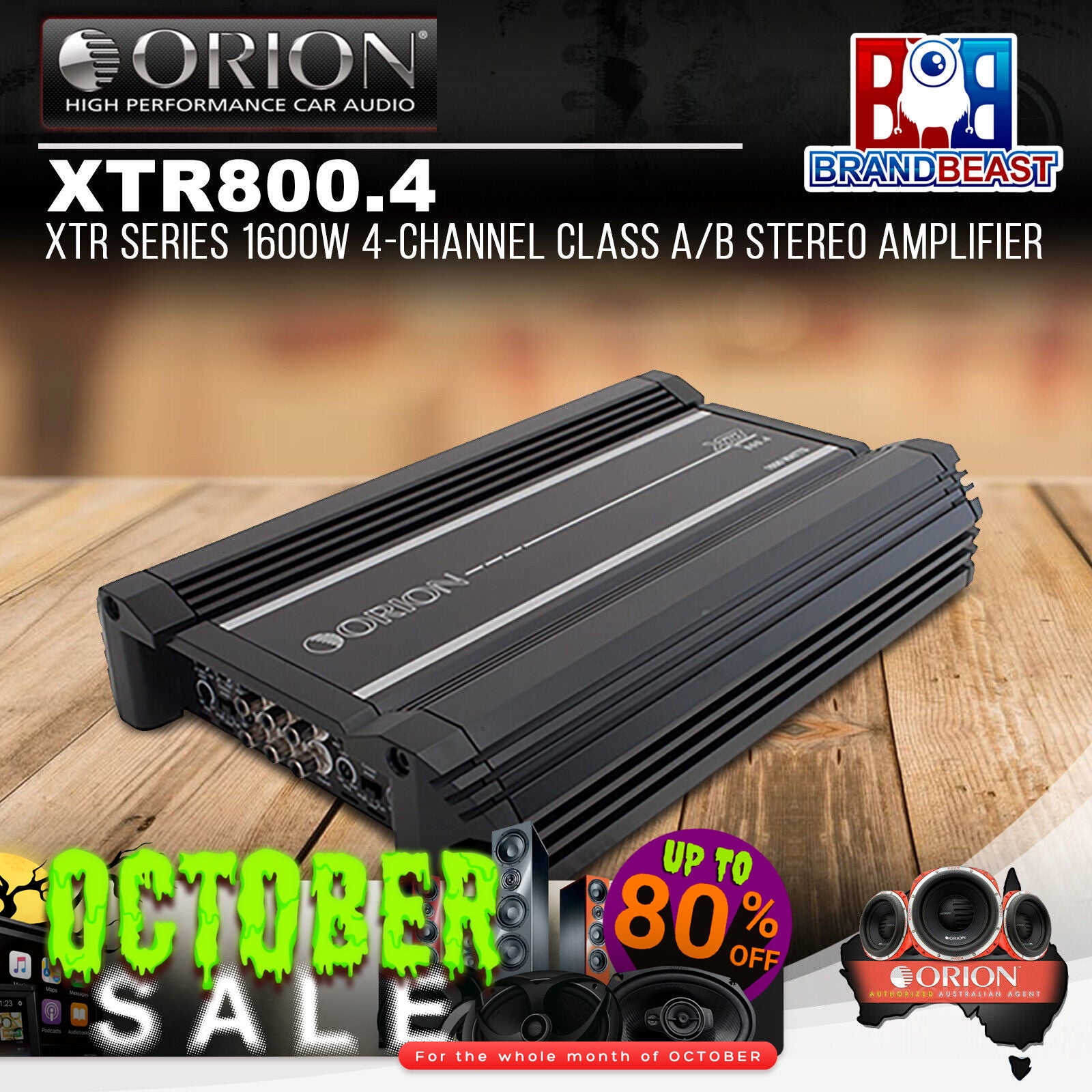 Orion 1600W 4-channel XTR series class A/B stereo amplifier. Specifications: